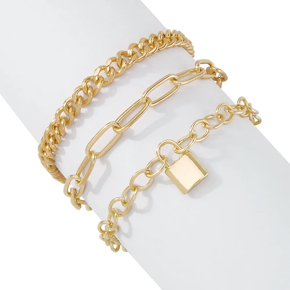 Update your vacay wardrobe with this cute anklet. Featuring a gold delicate chain and a lock charm, we are obsessing over it.