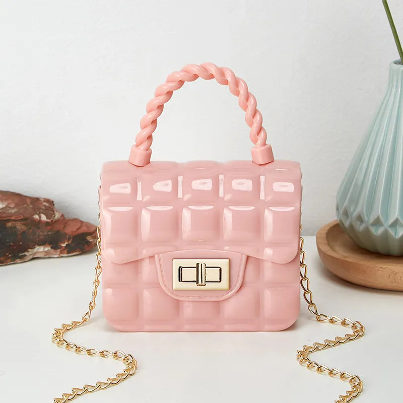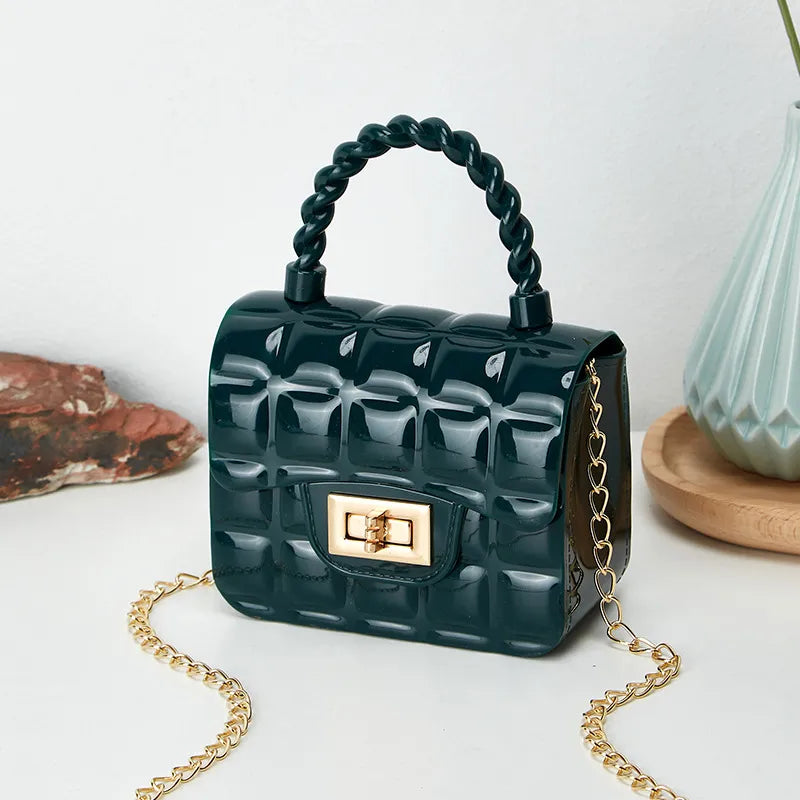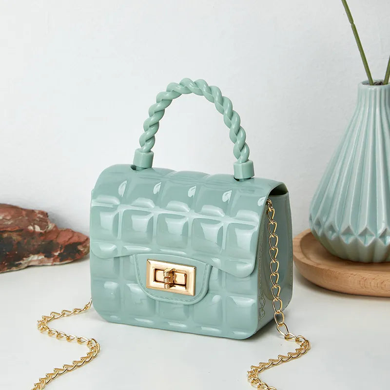 Mini Lock Detail Chain Crossbody Jelly Bag
