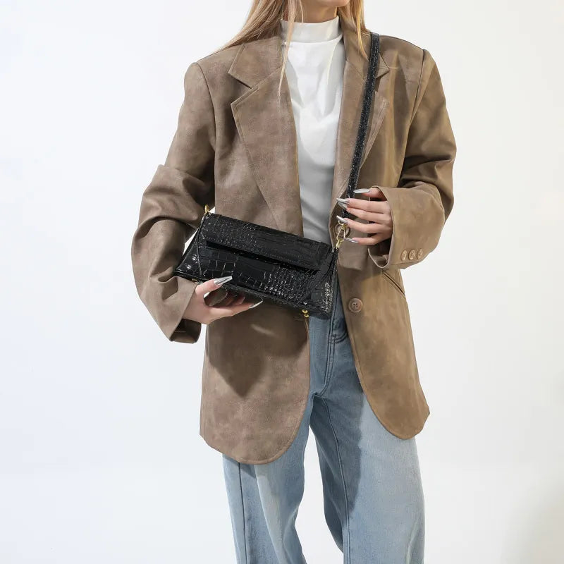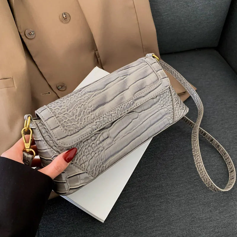 Retro Crocodile Flap Shoulder Bag
