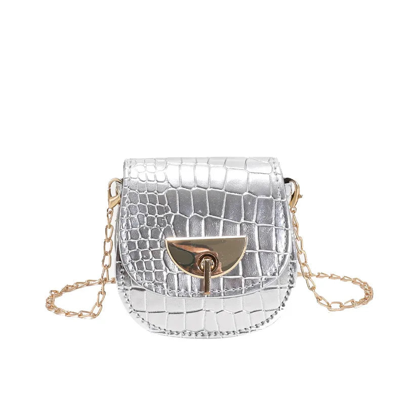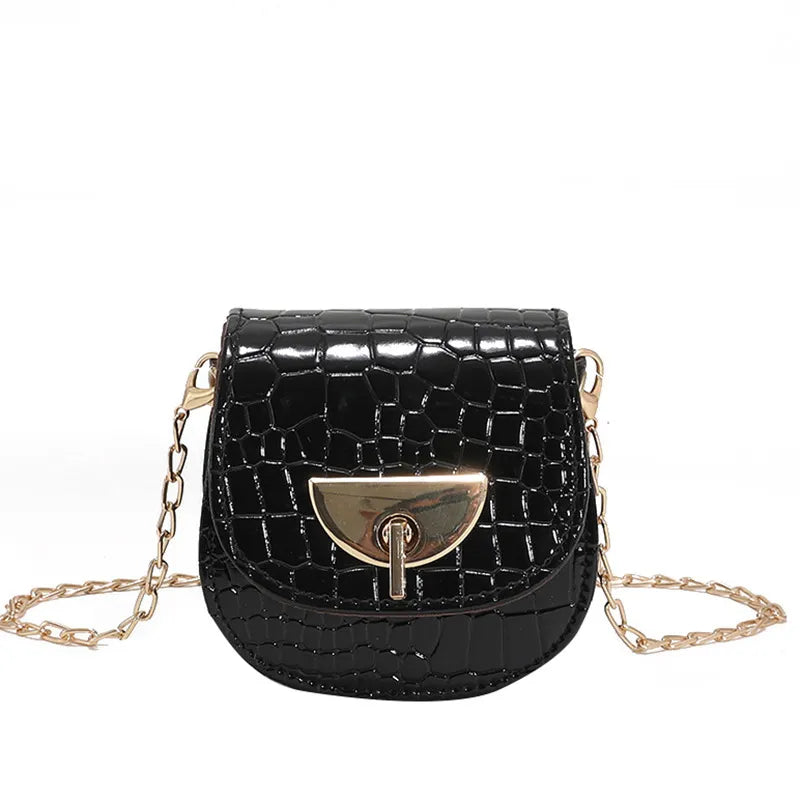 Stone Pattern Flap Lock Mini Chain Crossbody Bag