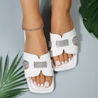 Give your everyday essentials a serious upgrade with these rhinestone detail flat sandals. Perfect for your next vacay or simply adding to your outfit of the day for a flawless finishing touch, you really can't go wrong with these real leather sandals.
