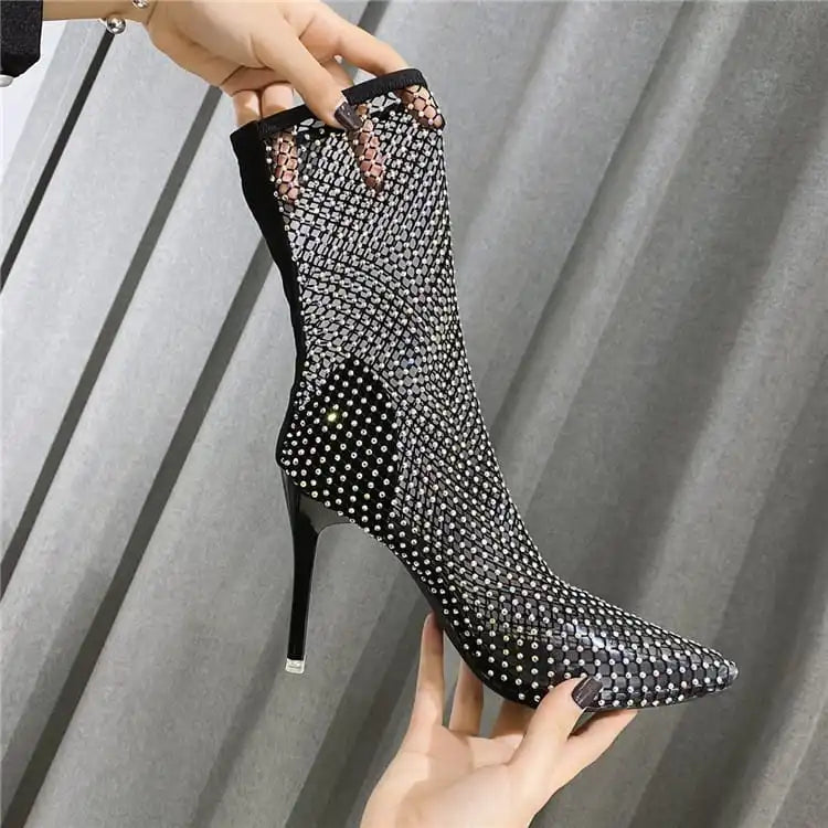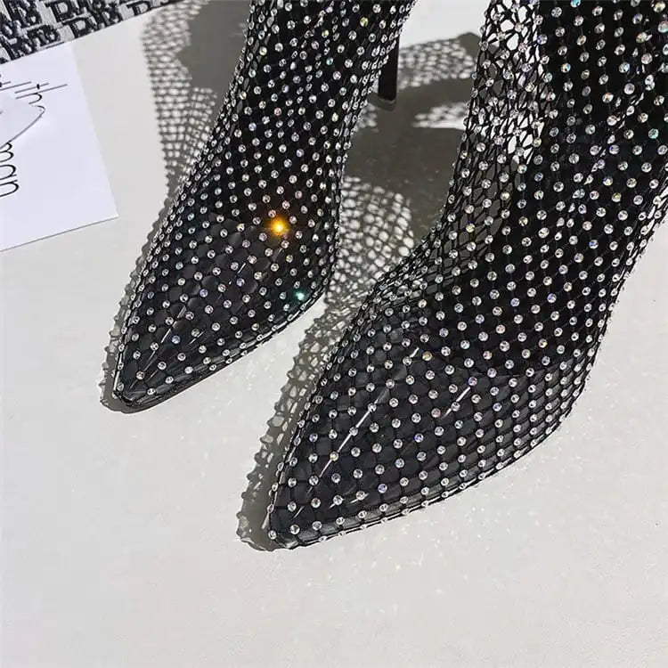 Turn heads for all the right reasons with these rhinestone high heel mid-calf boots. We are obsessed. Their rhinestone detailing and ankle high length are all you need to make a statement this season. Team with your fave look to stand out from the rest.