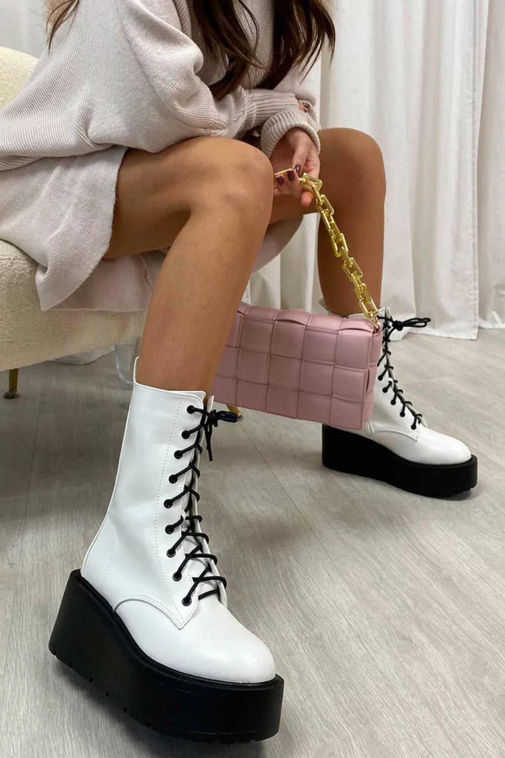 White PU Chunky Thick Sole Boots