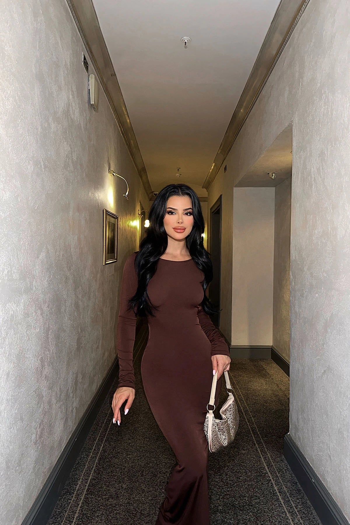 Steal all the stares this weekend in this figure-hugging scoop neck long sleeve maxi dress doll. With a scoop neckline and long sleeves, this shape maxi dress is here to banish all your what-to-wear dilemmas. Perfect for your weekend plans, this shape maxi dress is a yes from us. Team with clear heels, gold accessories and a mini bag for a look that will turn heads for all the right reasons.