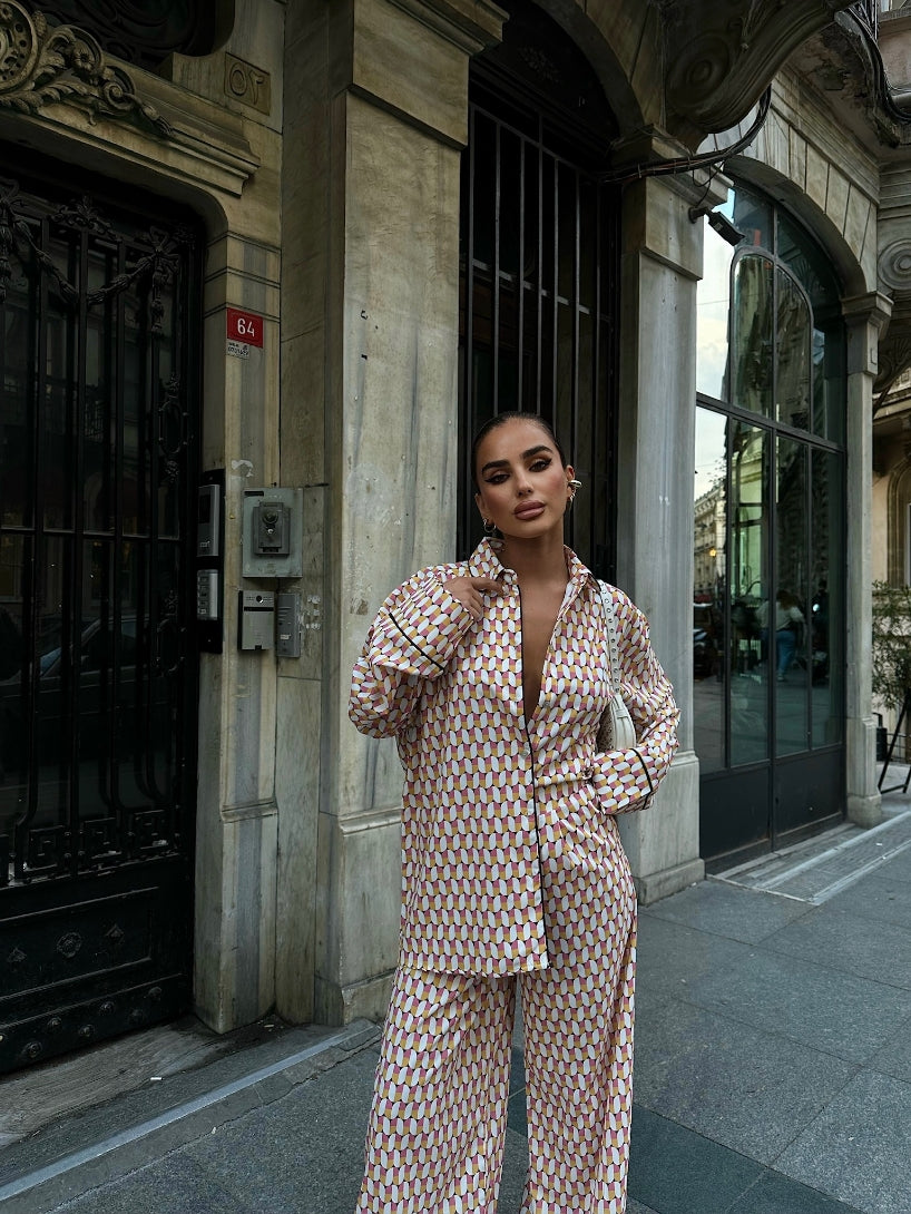 Switch up your new season style game with this abstract print shirt, it is perfect for your upcoming weekend plans. This shirt is made using abstract printed material with a button down design and long sleeves, how could you resist? Pair this shirt with the matching trousers, clear slip-on heels and your biggest hoop earrings for a look everyone will want.