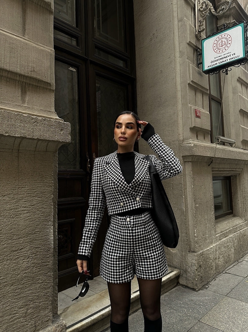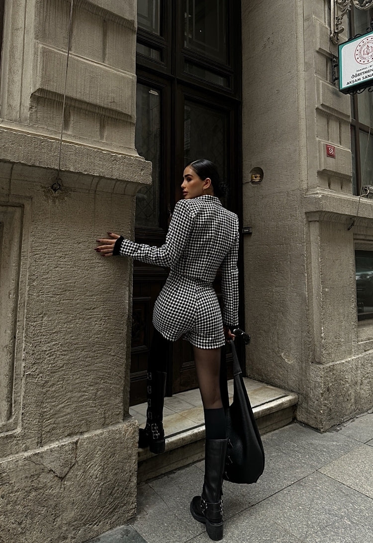 This blazer is perfect for your weekend wardrobe and beyond. Featuring a black and white striped with a button fastenings and a military design, we are obsessed. Team this with matching shorts or faux leather bottoms and strappy heels for a weekend worthy combo.