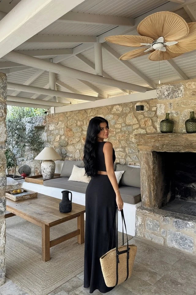This black crop top and skirt set is here to banish any of your what to wear dilemmas. From start to finish this mini skirt will have you looking totally on-trend. For a next-level look simply style with the matching top, high heels and accessories for a look that will have you setting trends wherever you step foot.