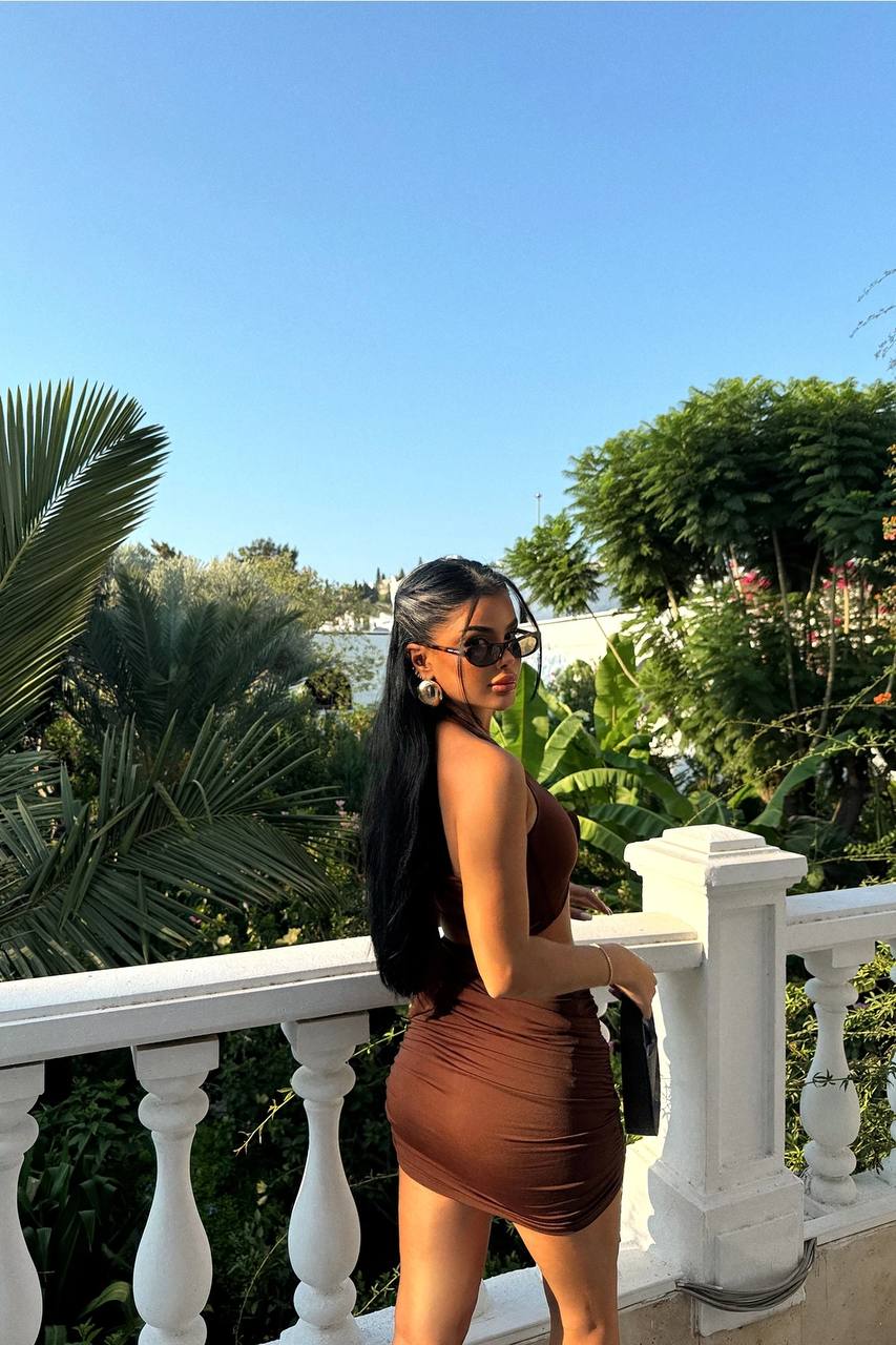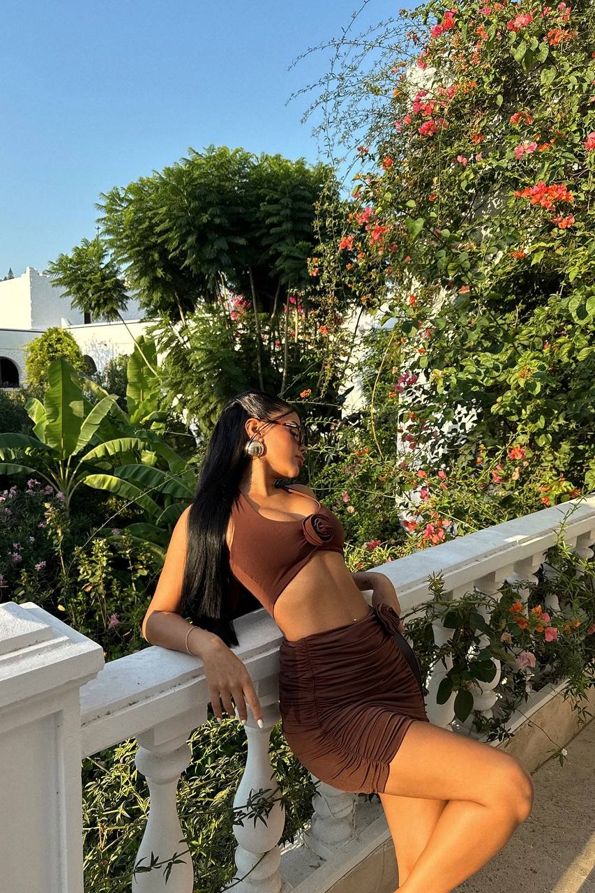 Brown Rose Detailed Skirt Suit
