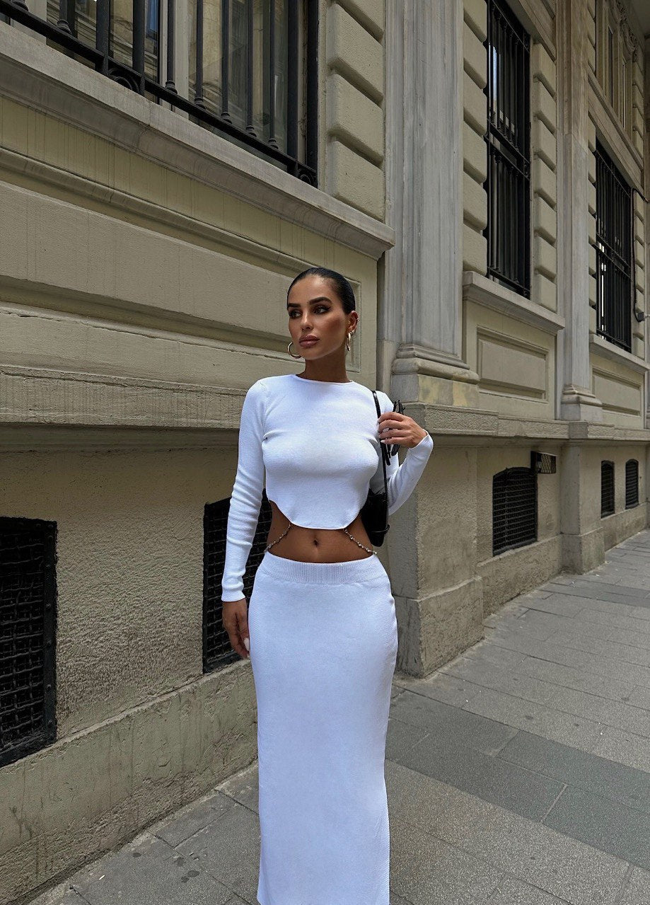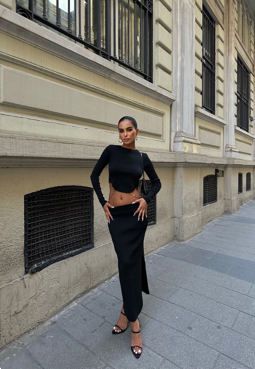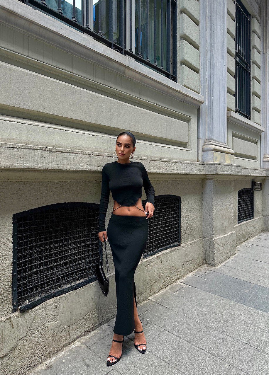 This chain detail top and skirt is here to banish any of your what to wear dilemmas, we can't get enough. From start to finish this skirt will have you looking totally on-trend. For a next-level look simply style with the matching top, high heels and accessories for a look that will have you setting trends wherever you step foot.