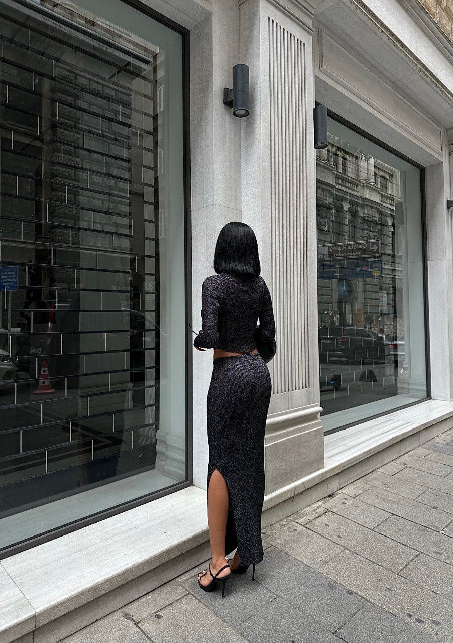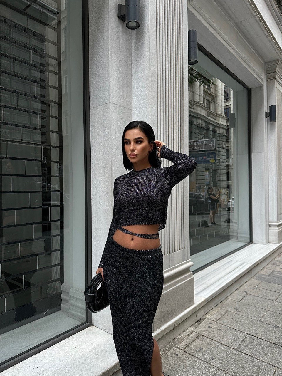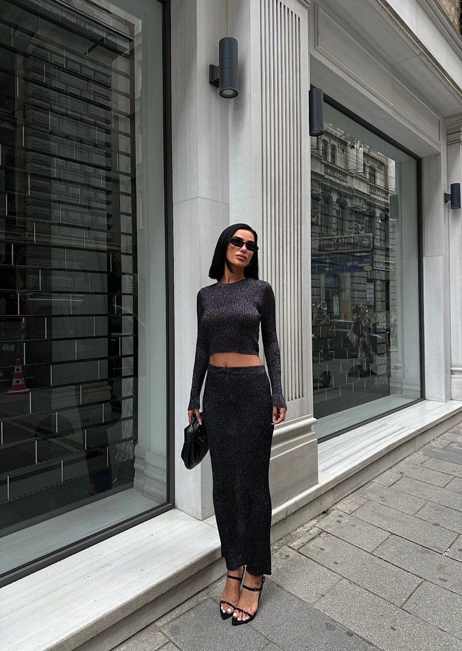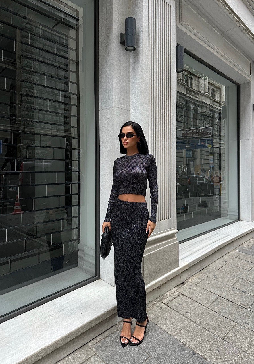 Glitter Knitted Cropped Top and Midaxi Skirt