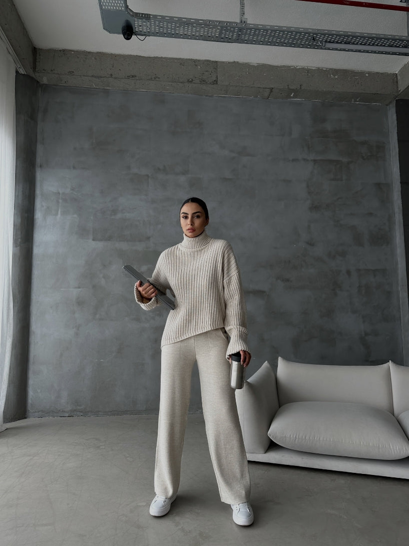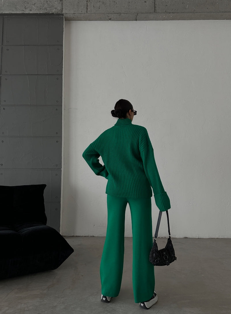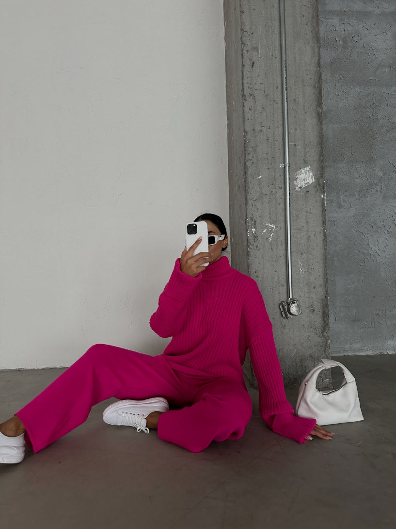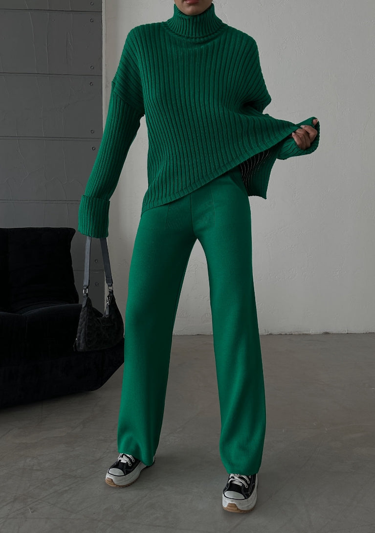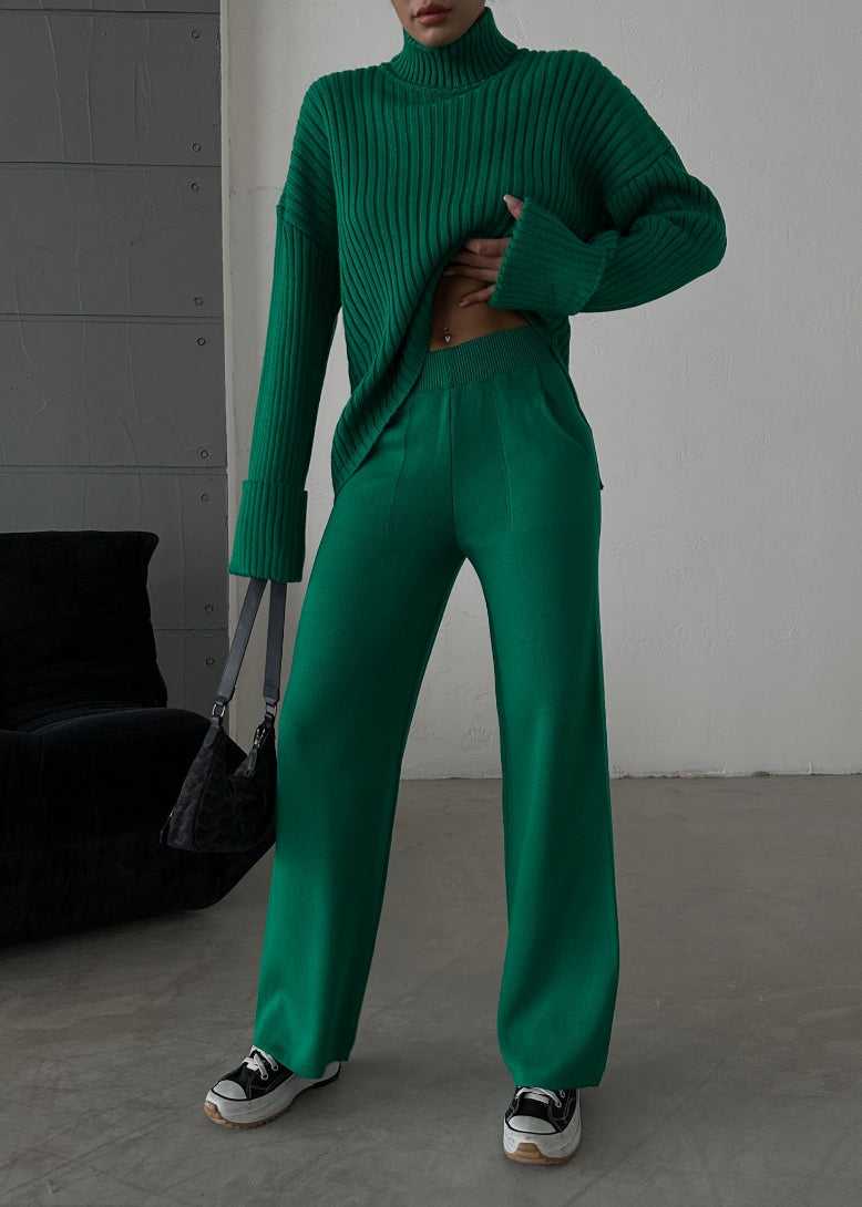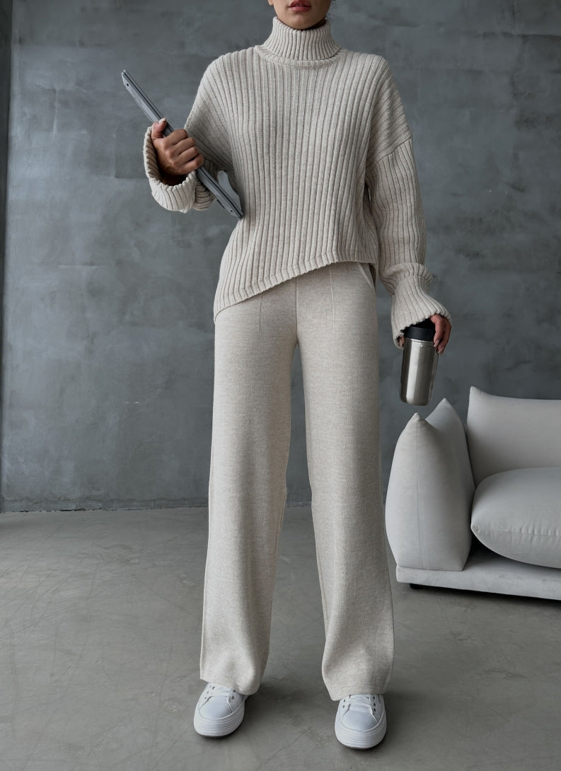 When the dress code call for some comfy vibes, look no further than this knit turtle neck jumper and trouser set. Brought to you in a knit material with a turtle neck design and a relaxed fit, we just can't get enough. Style this knit jumper effortlessly with the matching bottoms, trainers and simple accessories for a maternity look you will be reaching for again and again.