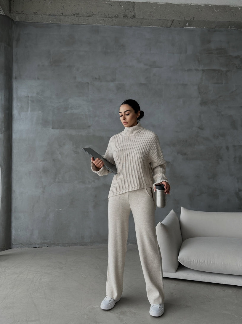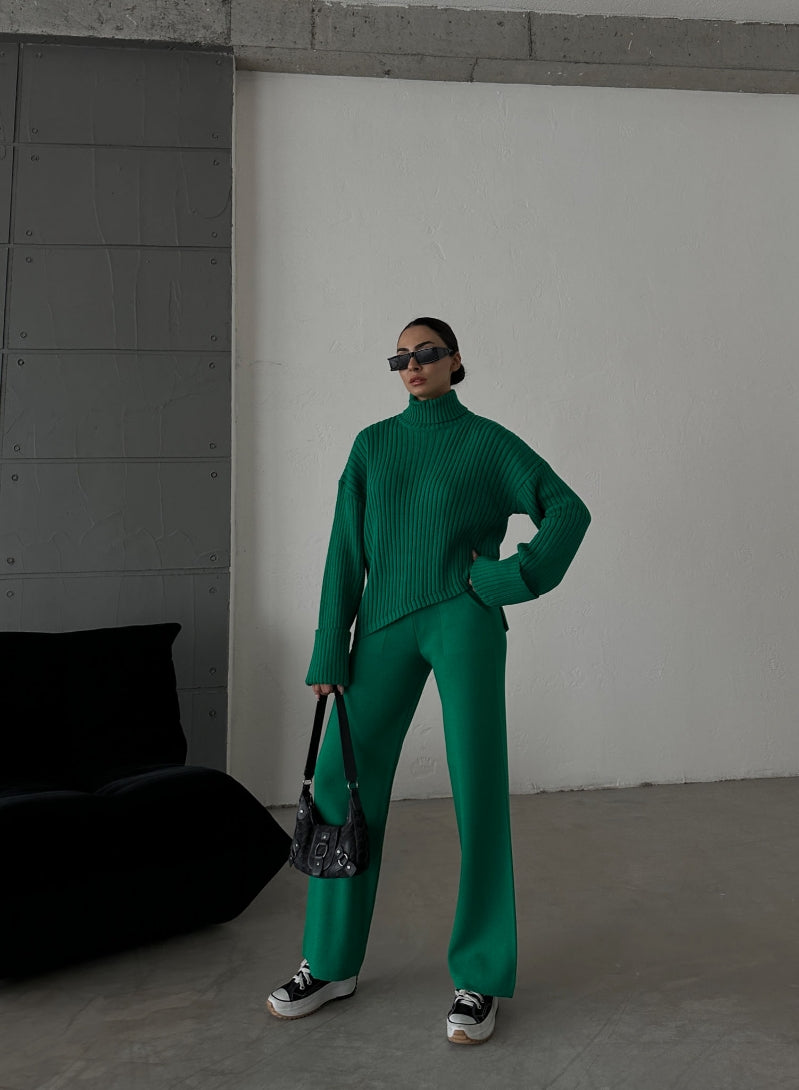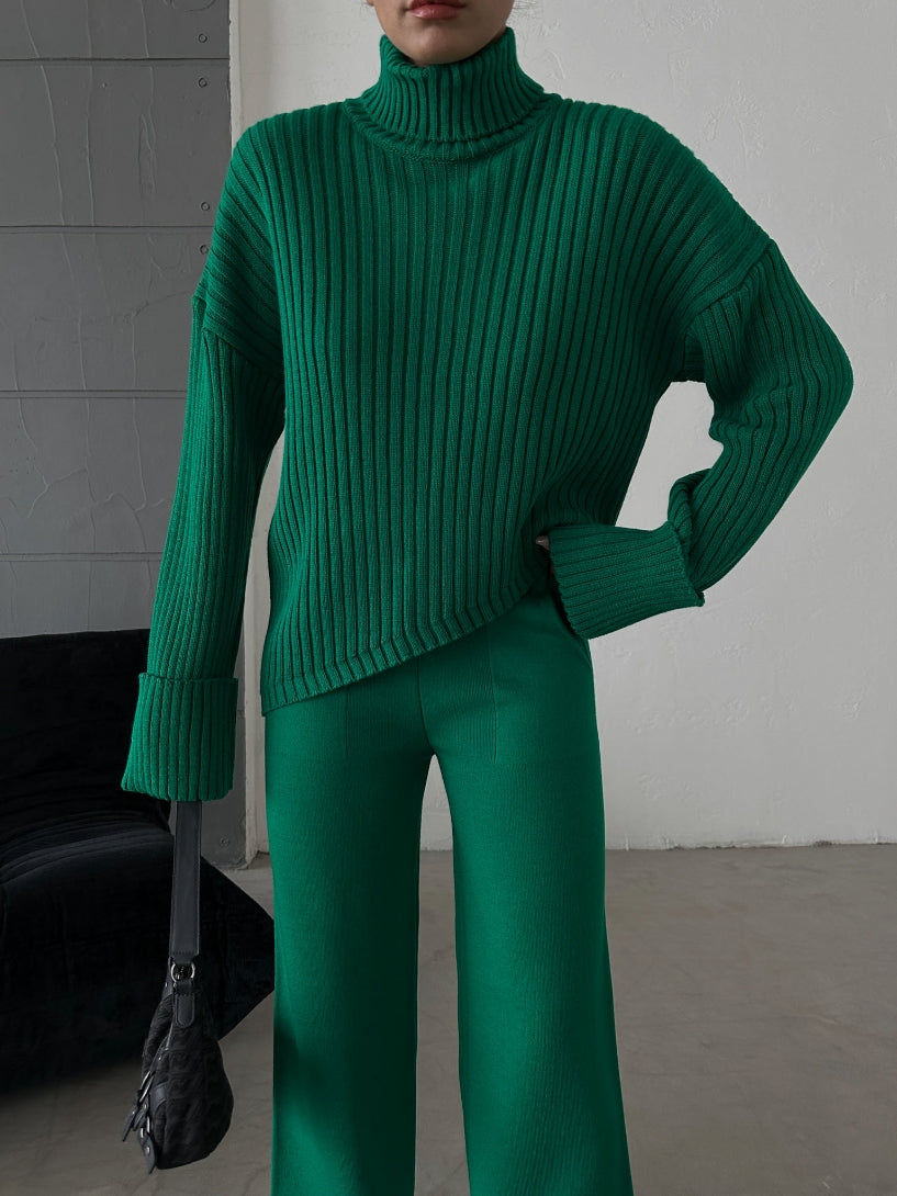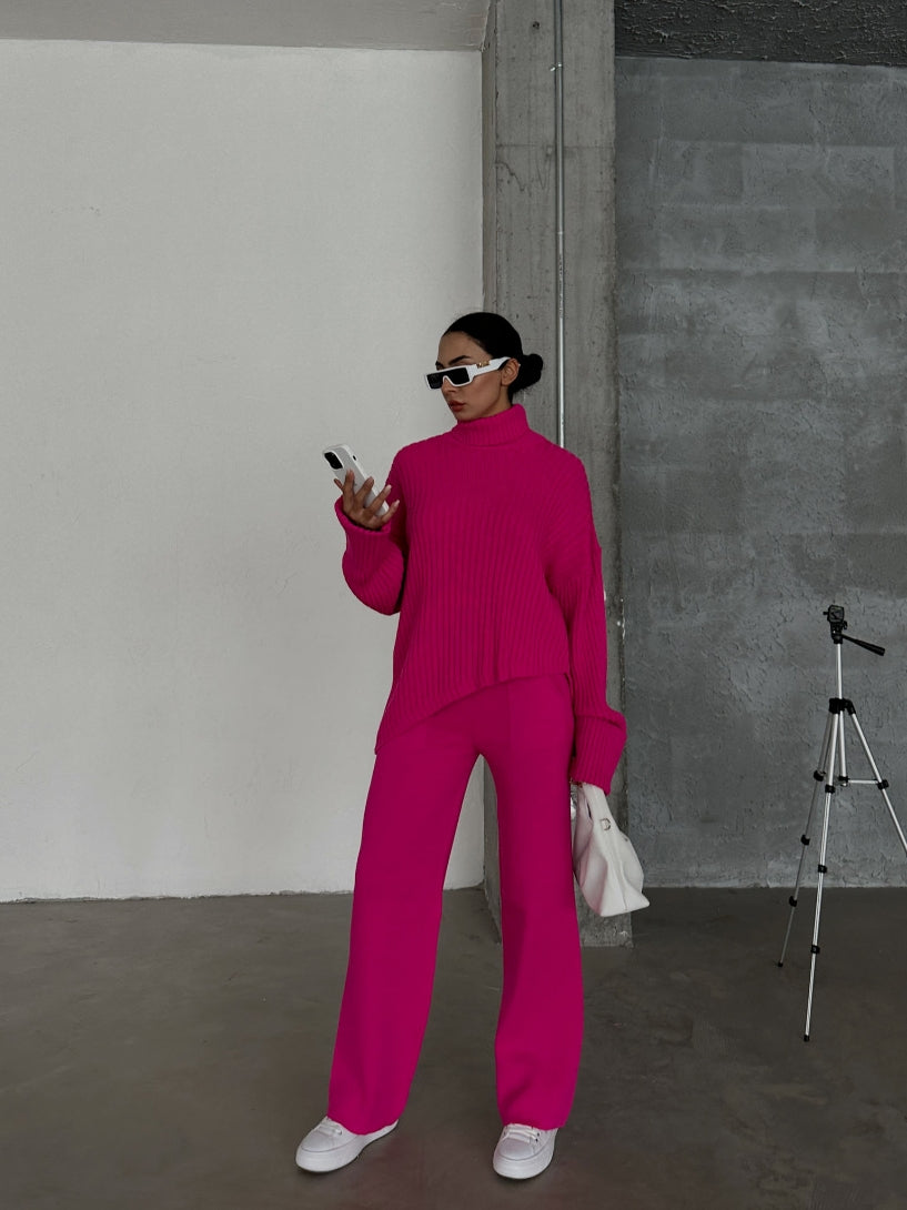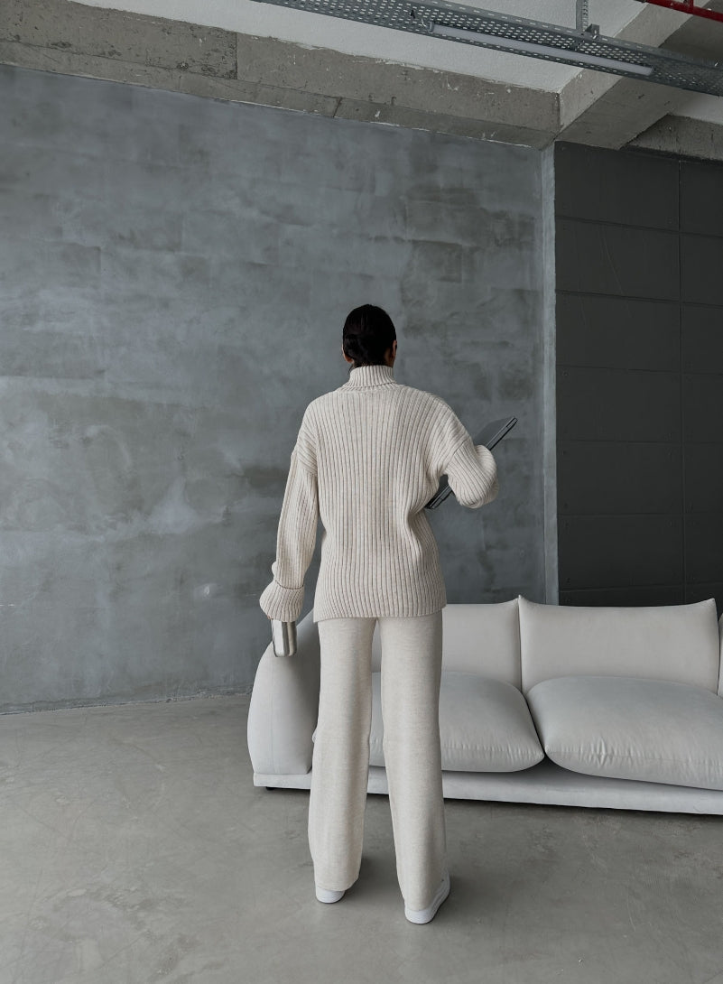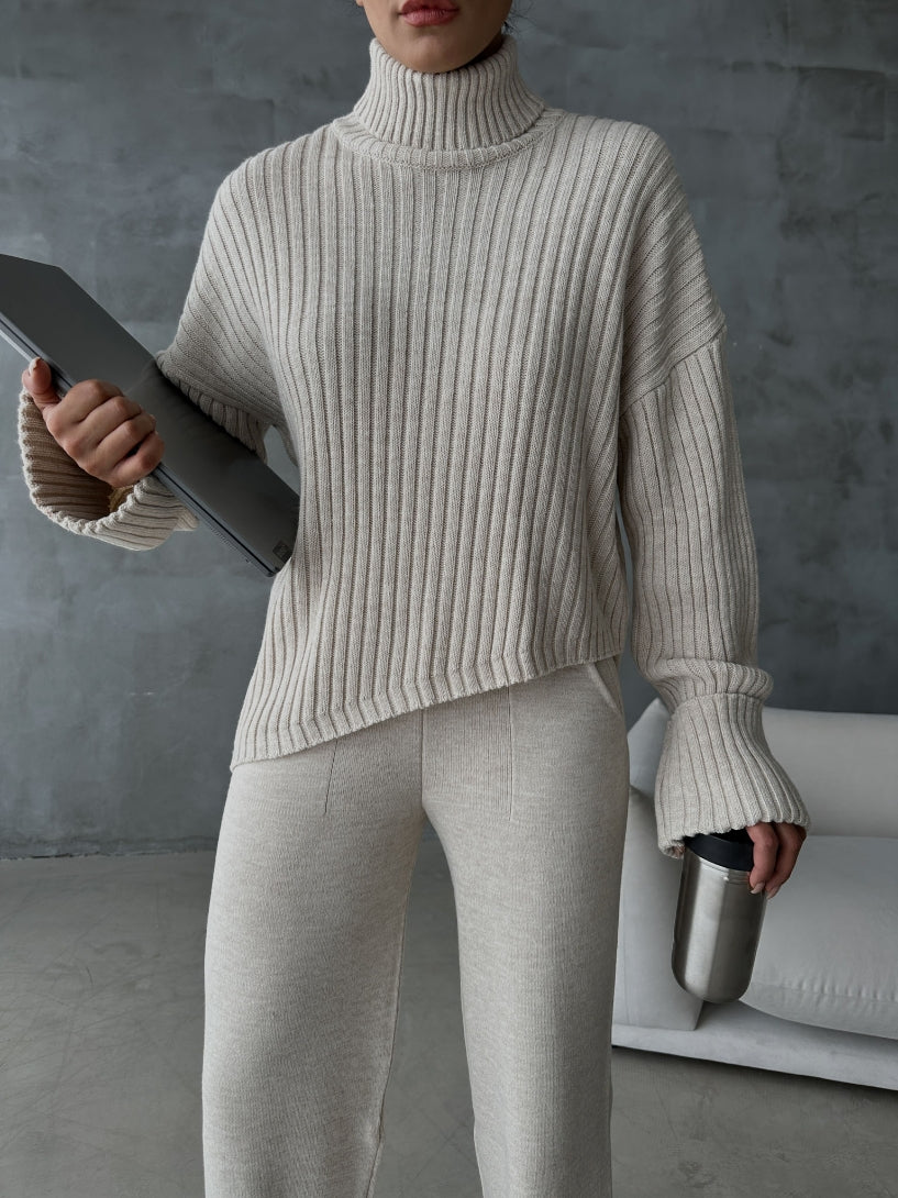 When the dress code call for some comfy vibes, look no further than this knit turtle neck jumper and trouser set. Brought to you in a knit material with a turtle neck design and a relaxed fit, we just can't get enough. Style this knit jumper effortlessly with the matching bottoms, trainers and simple accessories for a maternity look you will be reaching for again and again.