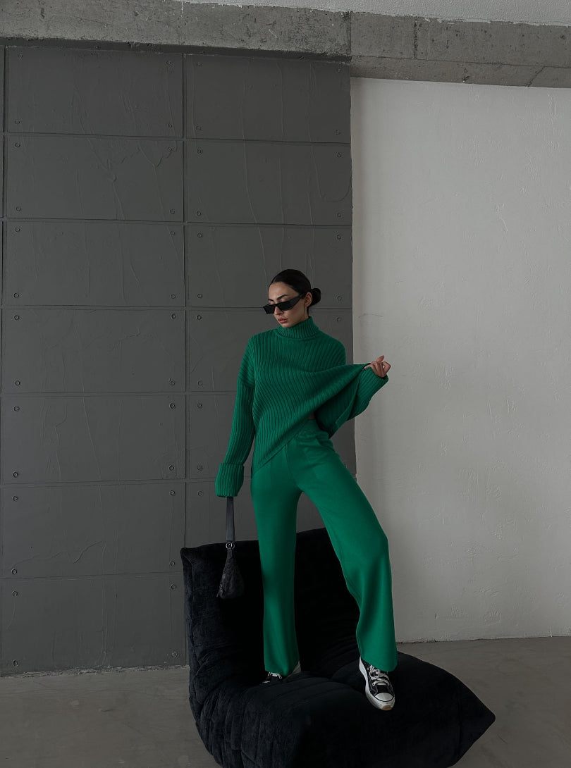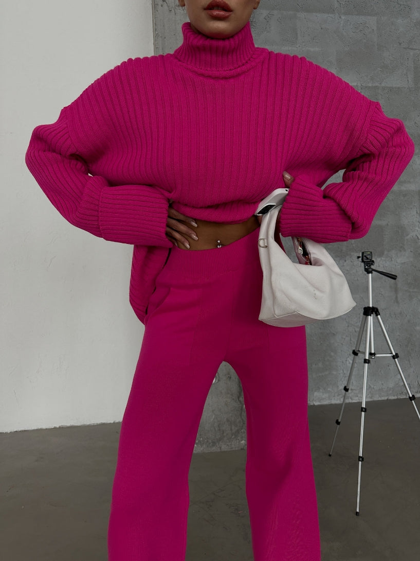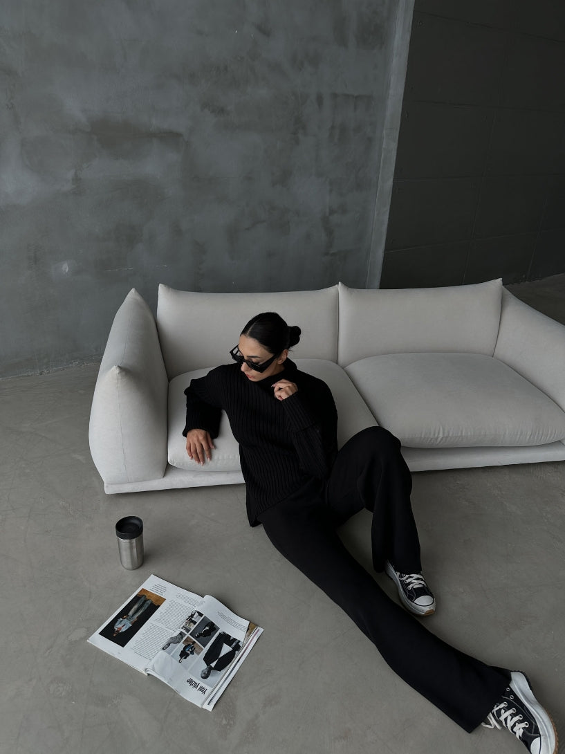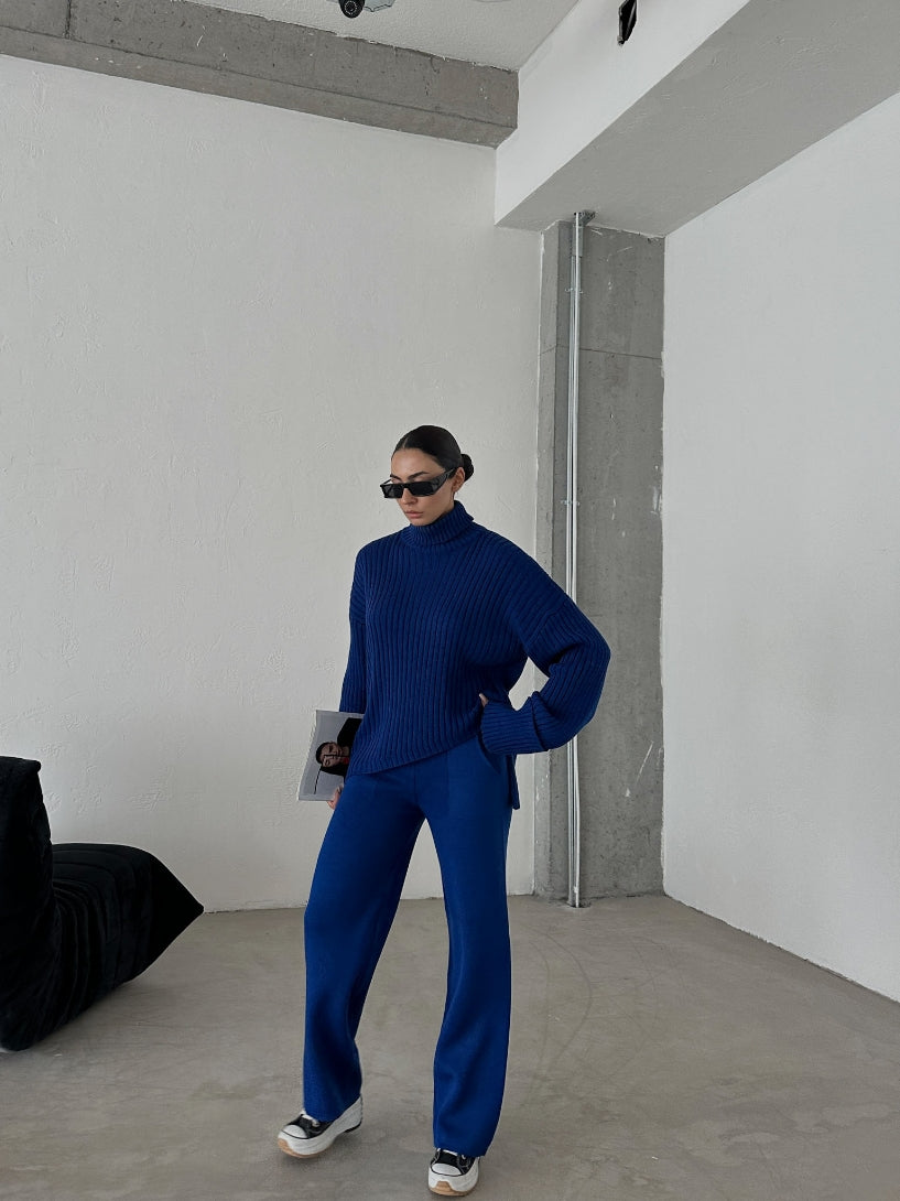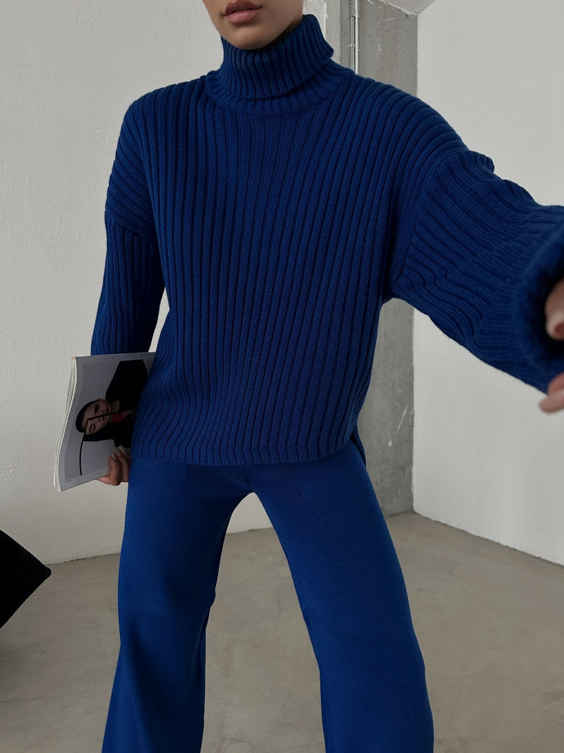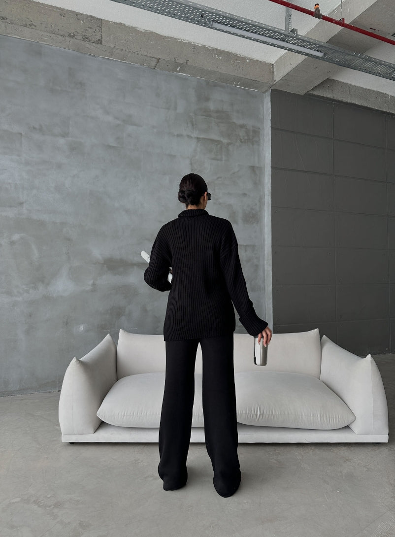 When the dress code call for some comfy vibes, look no further than this knit turtle neck jumper and trouser set. Brought to you in a knit material with a turtle neck design and a relaxed fit, we just can't get enough. Style this knit jumper effortlessly with the matching bottoms, trainers and simple accessories for a maternity look you will be reaching for again and again.