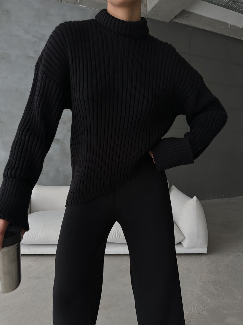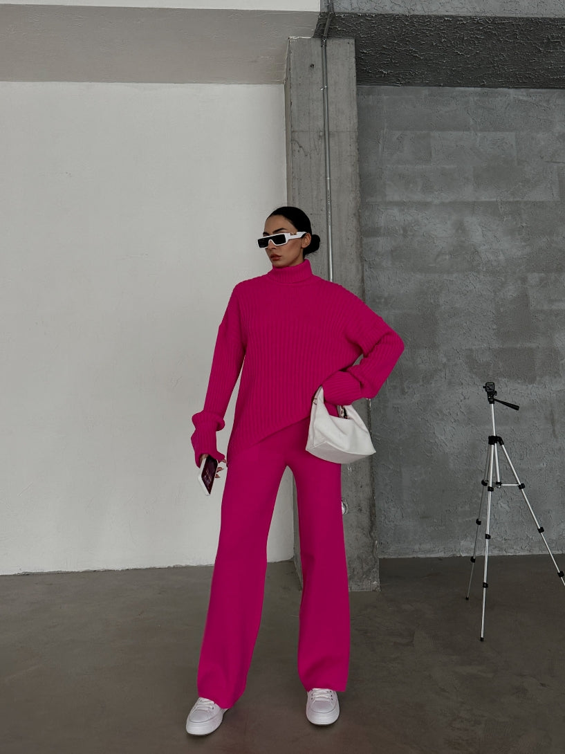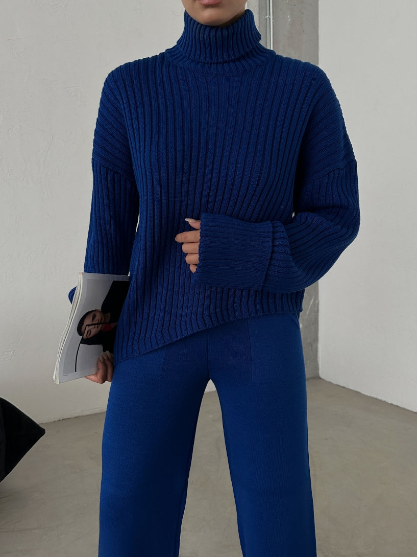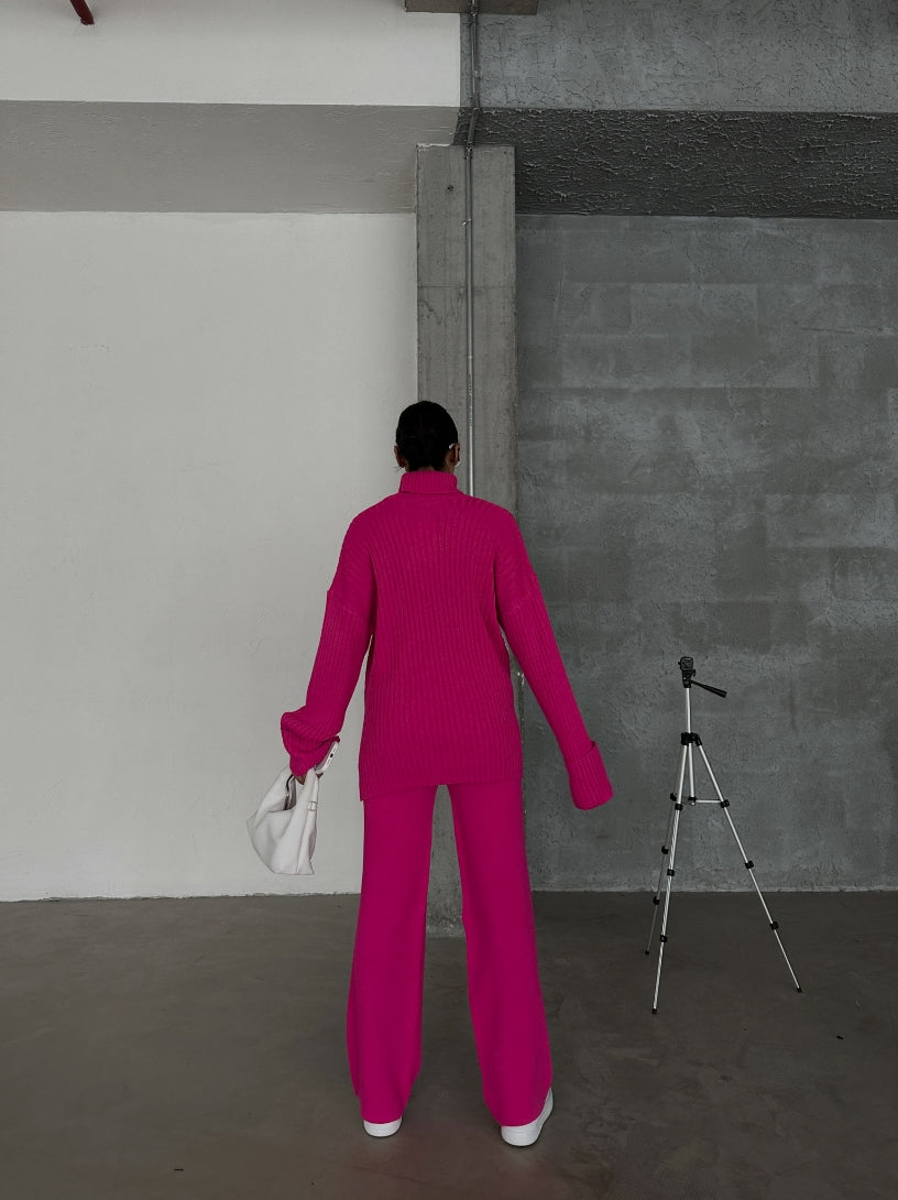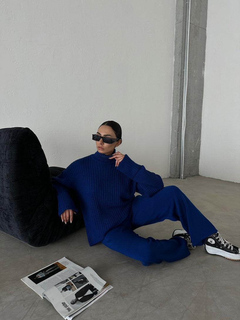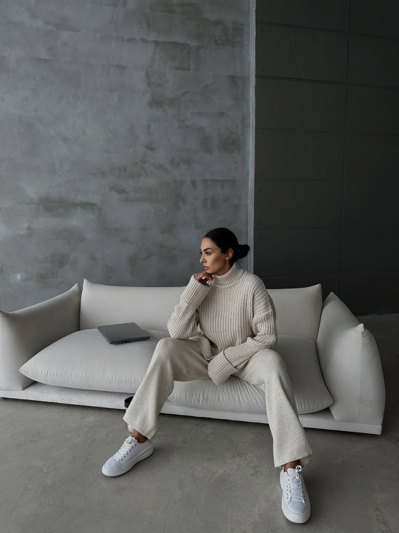 When the dress code call for some comfy vibes, look no further than this knit turtle neck jumper and trouser set. Brought to you in a knit material with a turtle neck design and a relaxed fit, we just can't get enough. Style this knit jumper effortlessly with the matching bottoms, trainers and simple accessories for a maternity look you will be reaching for again and again.