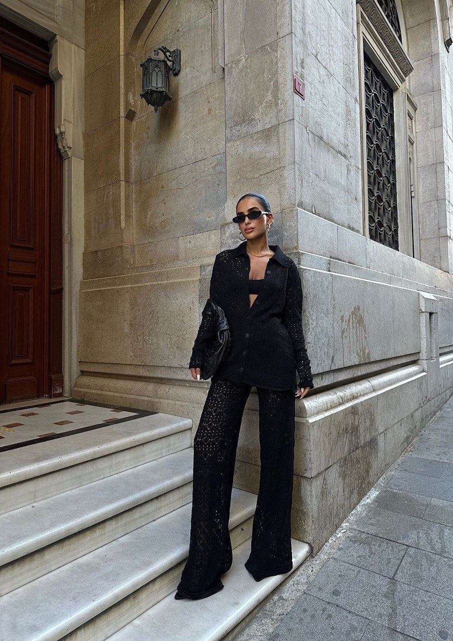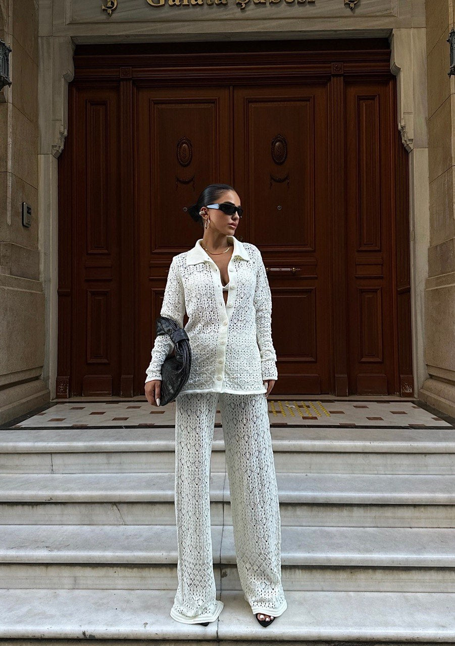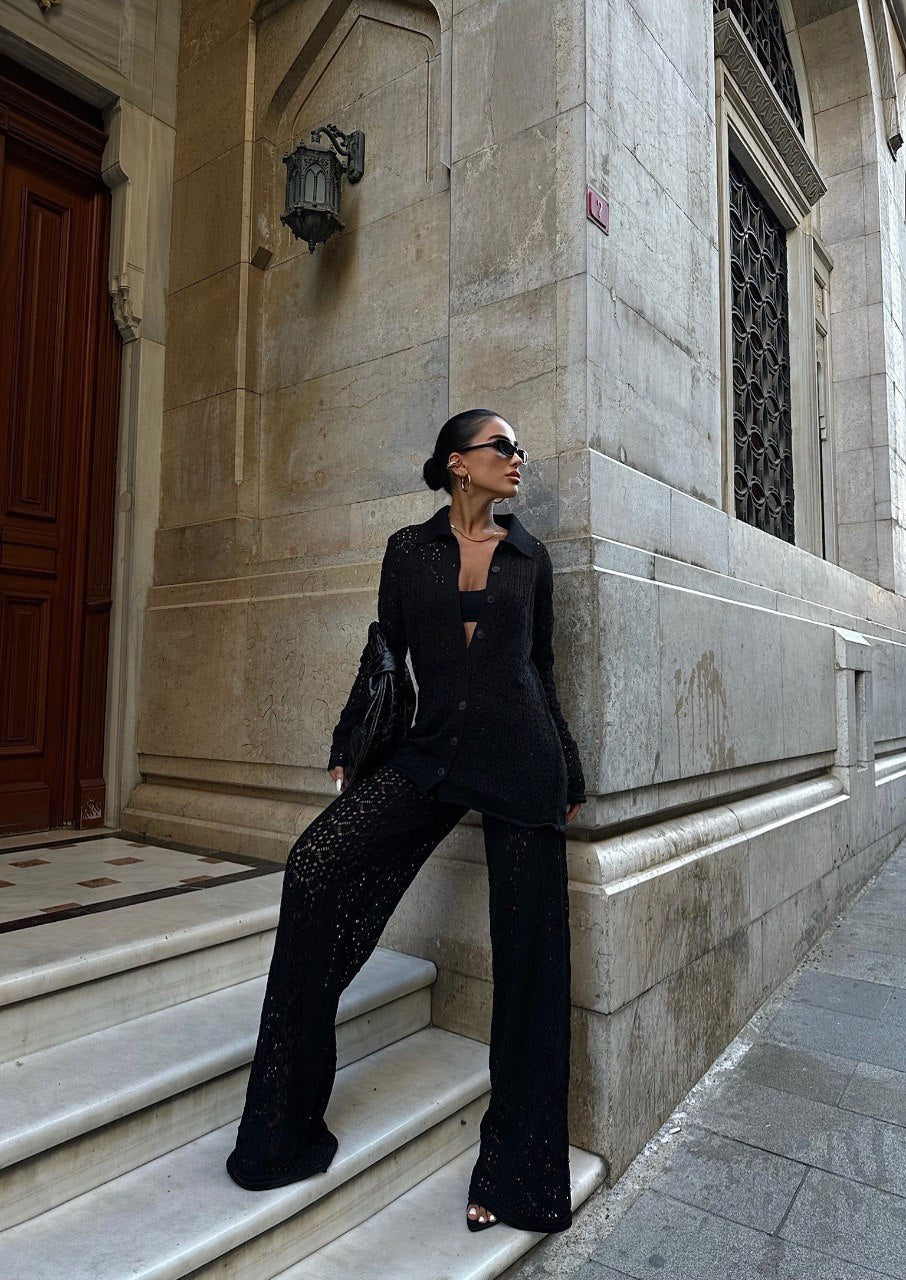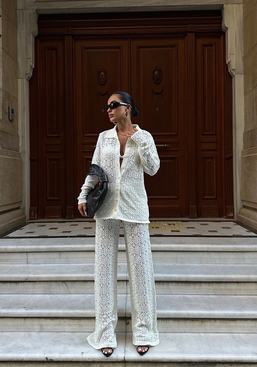 Switch up your new season style game with this transparent knitted shirt and trouser set, it's giving all the fresh holiday vibes doll. Babe this co-ord has a figure-flattering fit, this set is perfect for your holiday suitcase. Pair this sandals and some sunglasses for a full proof finish.