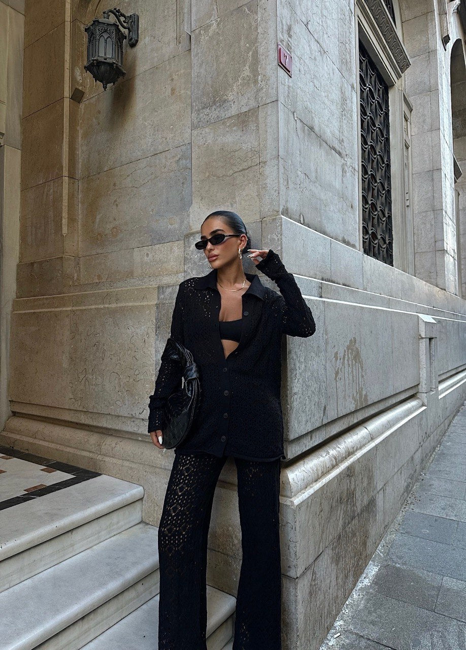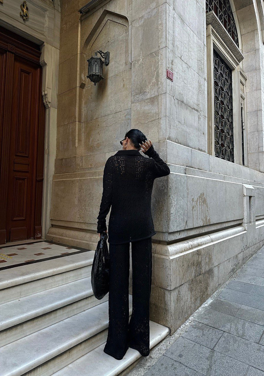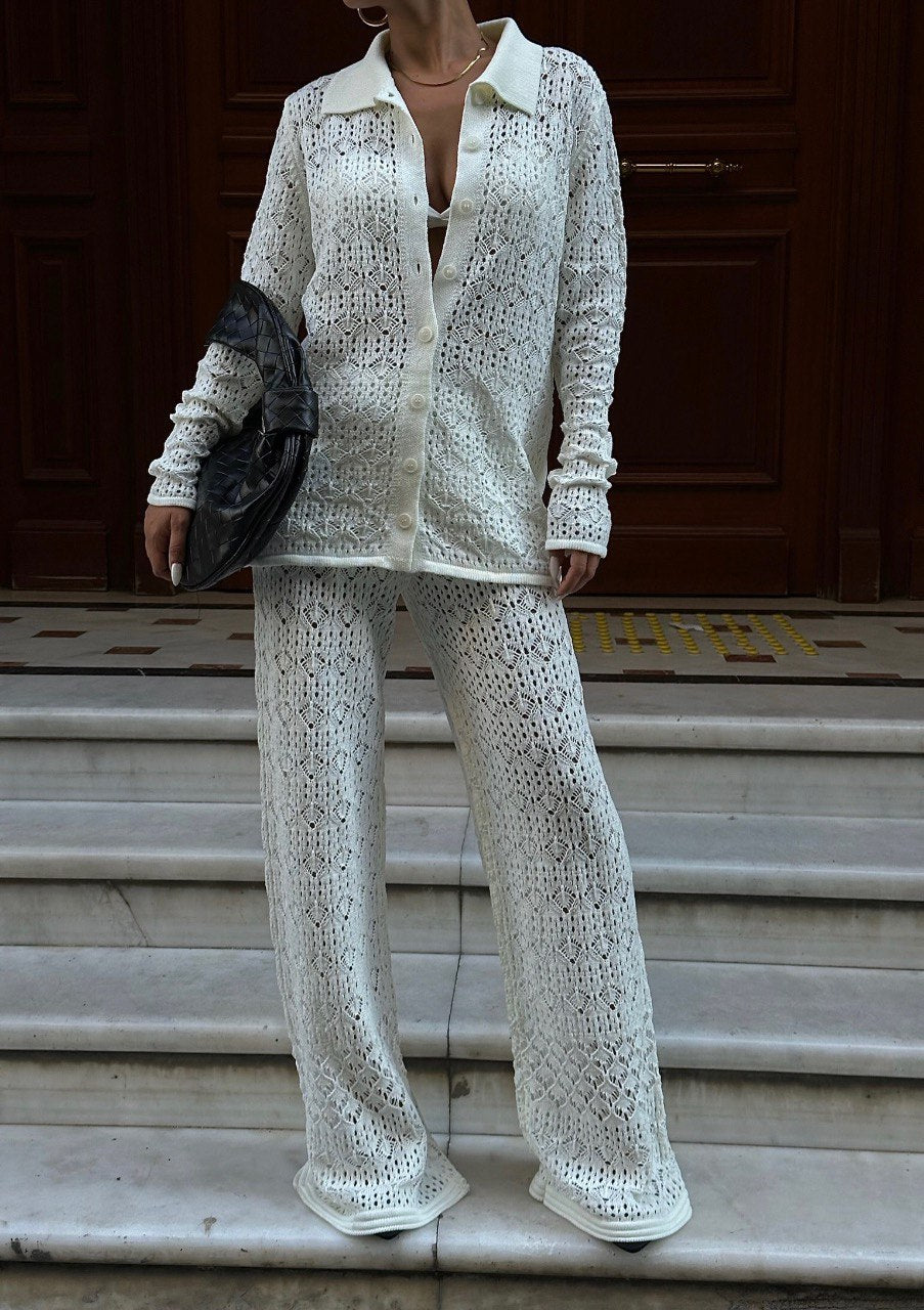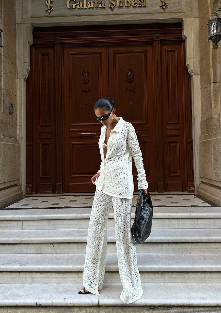 Switch up your new season style game with this transparent knitted shirt and trouser set, it's giving all the fresh holiday vibes doll. Babe this co-ord has a figure-flattering fit, this set is perfect for your holiday suitcase. Pair this sandals and some sunglasses for a full proof finish.