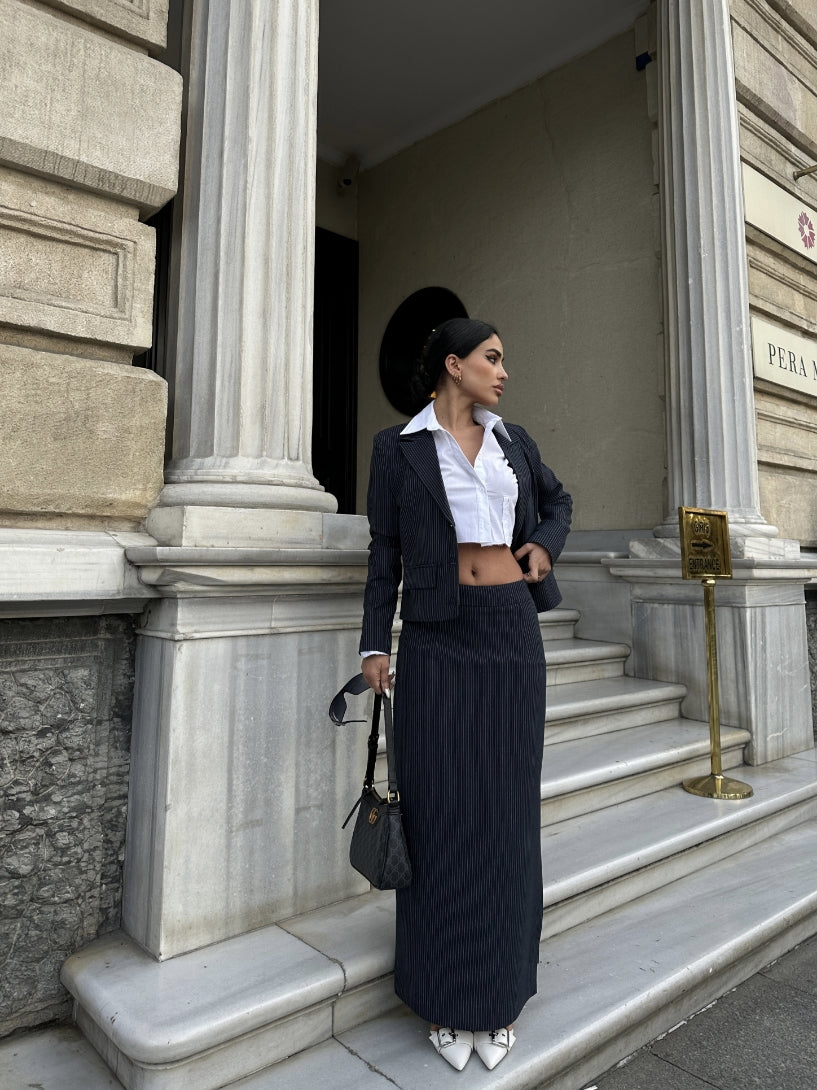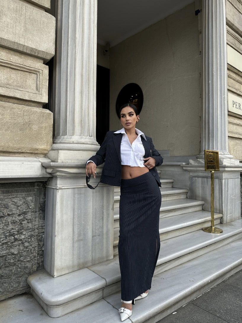 Get ready to steal the show with this tailored blazer and midaxi skirt set doll. Made with a midaxi length and a figure-flattering fit that will earn you all the right attention, what more could you ask for? We know this skirt is the answer to all those styling dilemmas. Wear with a cropped tee, a puffer jacket and high heels for a look that will get everyone talking.