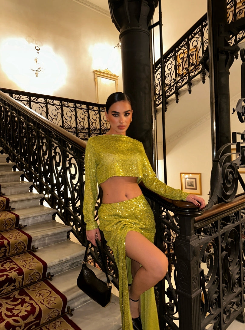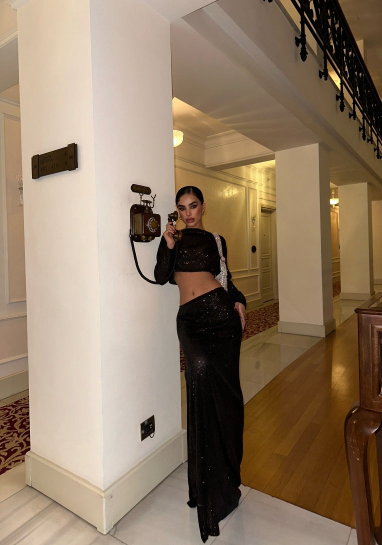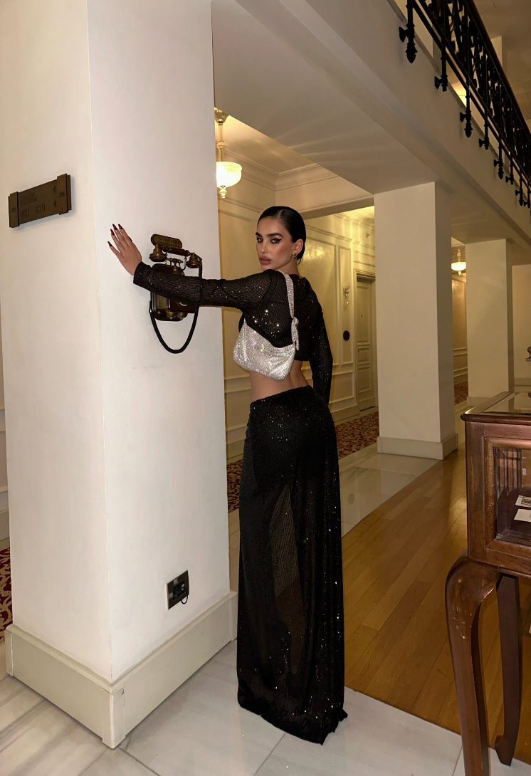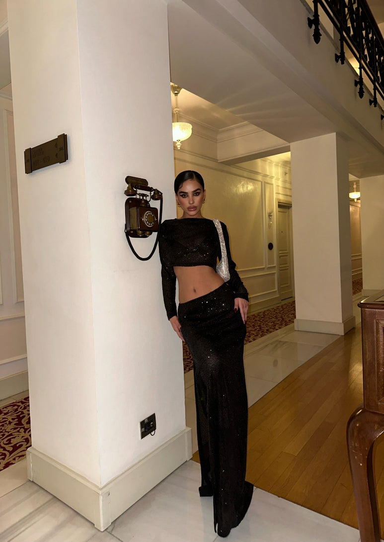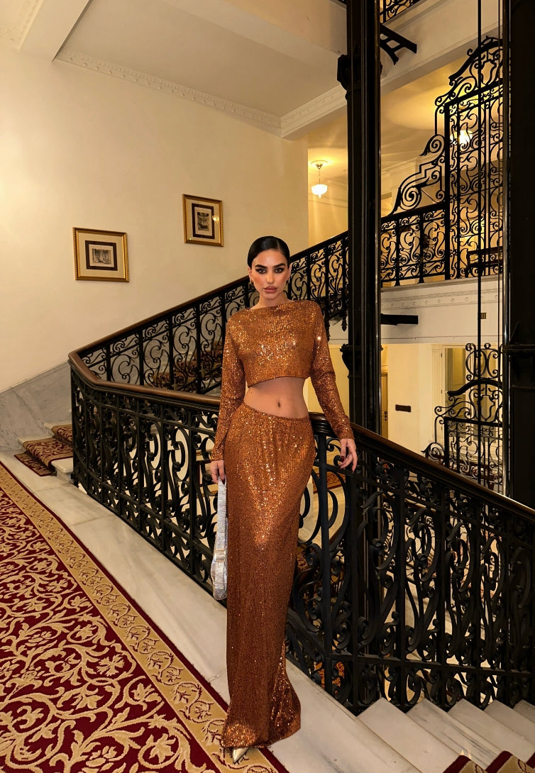 Channel all the luxe vibes into your weekend wardrobe with this sequin dress doll. Made from a glitter material with sequin detail, how could you say no? When the dress code calls for glam vibes, this shape top is the only answer. Team with the matching maxi skirt, clear heels and gold accessories for a look that won't go unnoticed.