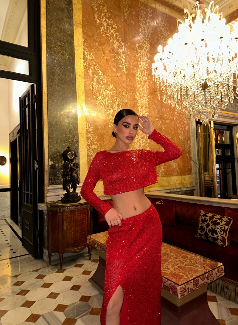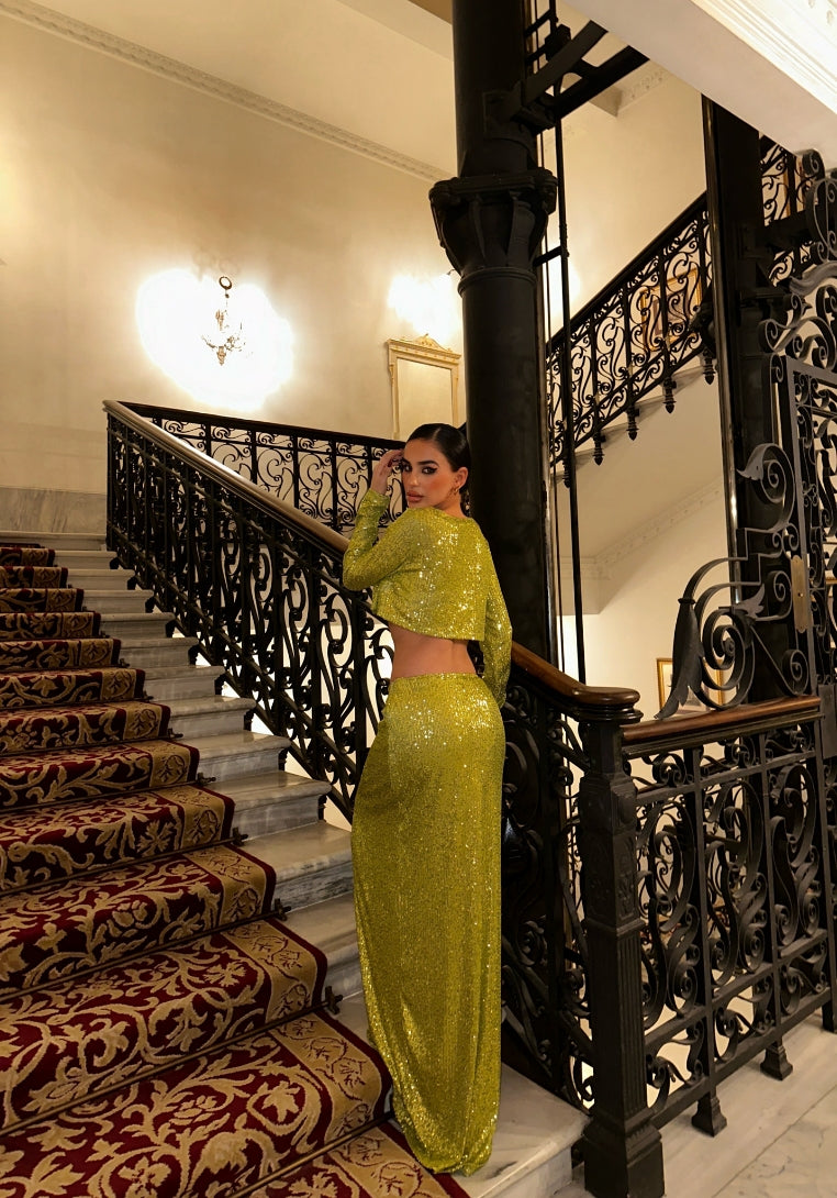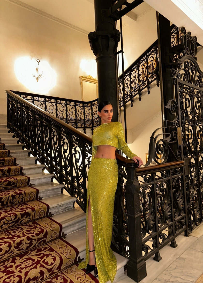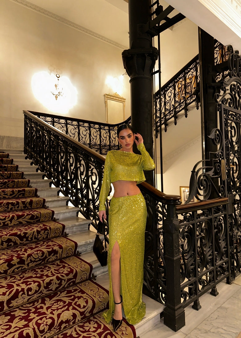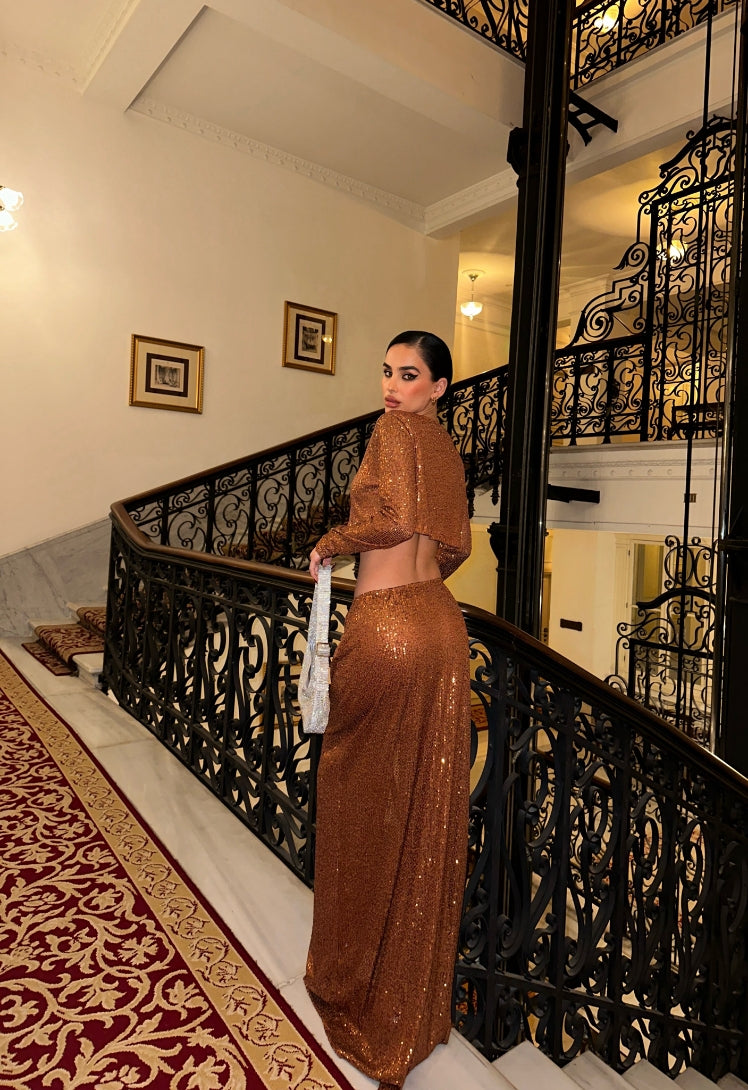 Channel all the luxe vibes into your weekend wardrobe with this sequin dress doll. Made from a glitter material with sequin detail, how could you say no? When the dress code calls for glam vibes, this shape top is the only answer. Team with the matching maxi skirt, clear heels and gold accessories for a look that won't go unnoticed.