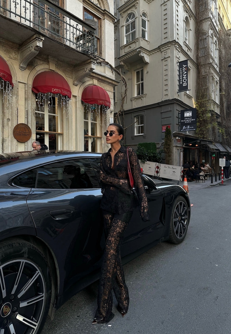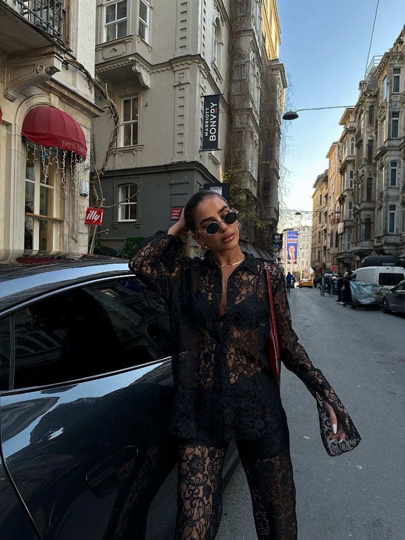 Sheer Lace Shirt and Trouser Set