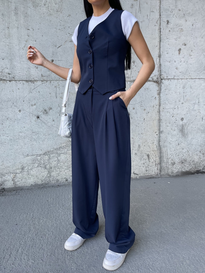 Switch up your new season style with this simple tailored waistcoat and trouser. Style this wasitcoat with the matching trousers for a look this is giving us all of the chic vibes. Just add strappy heels and statement accessories for a flawless finish.