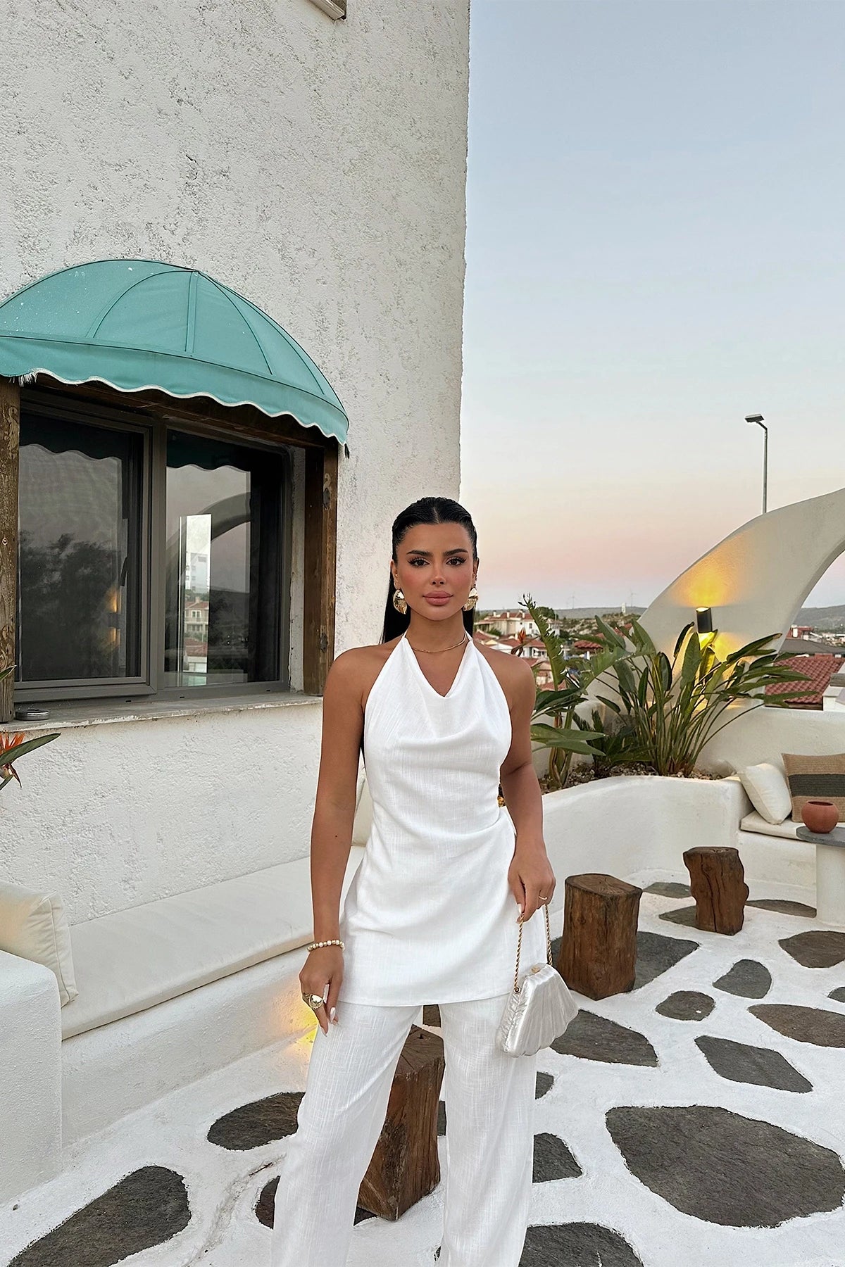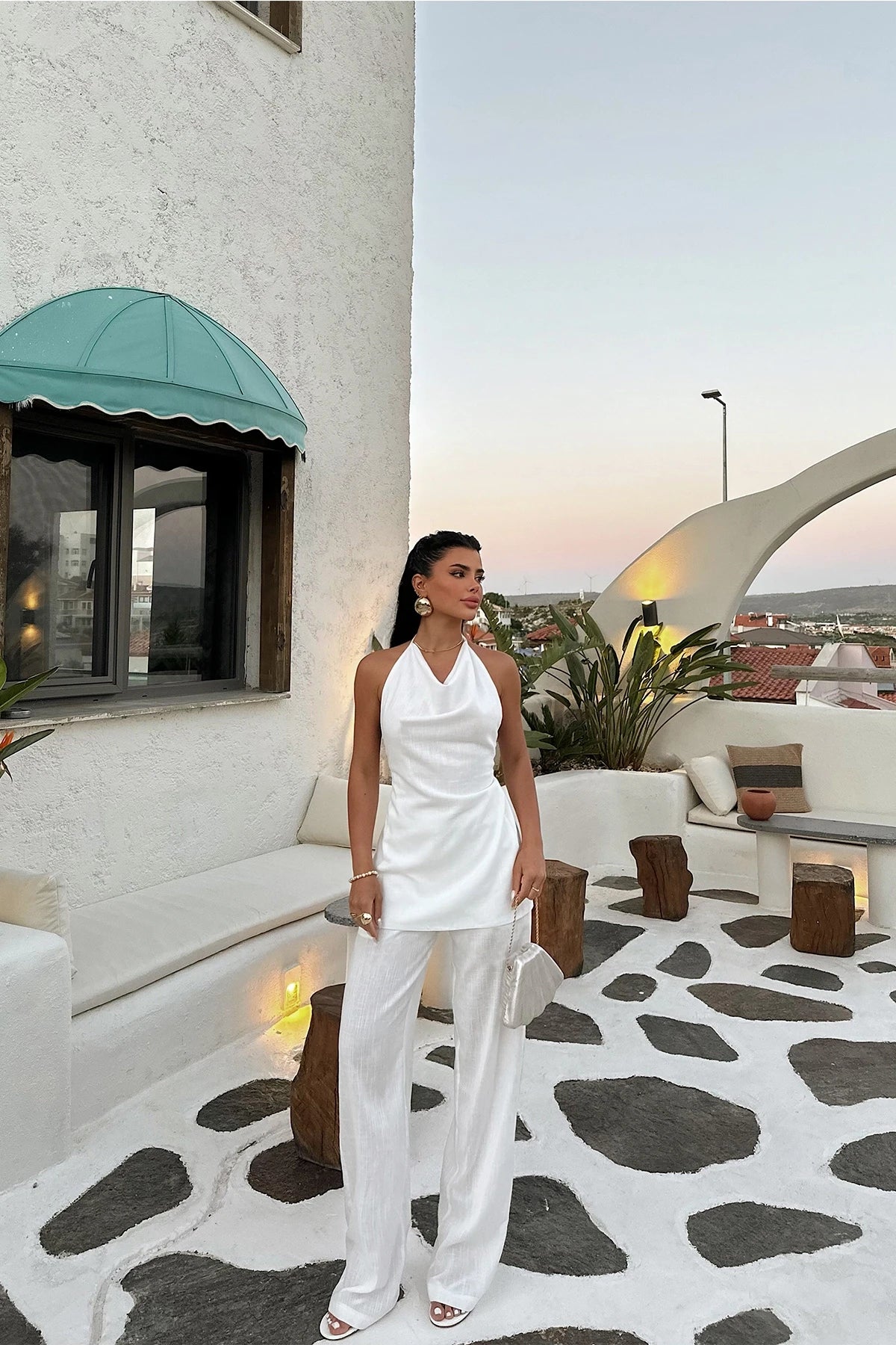 Channel all the dreamy vibes into your weekend wardrobe with these taupe linen look fitted trousers, how could you not be in love? Perfect for your weekend plans, these trousers need adding straight to your basket. Team with the matching top, heeled boots and a mini bag for a fiercely feminine finish.