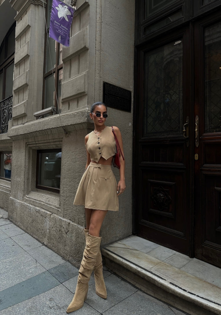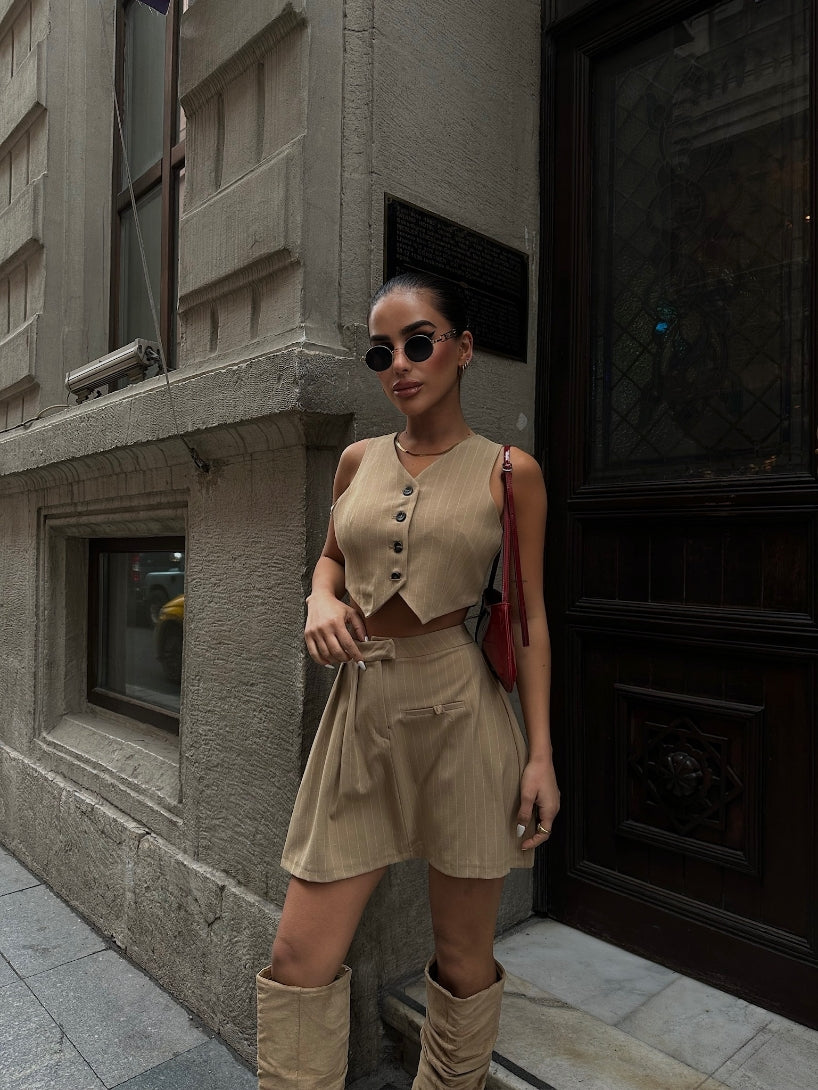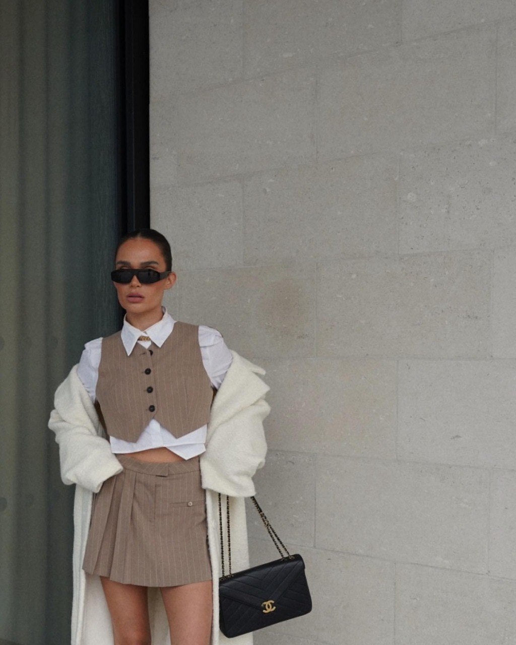 We're obsessed with this tailored waistcoat and mini skirt for your weekend wardrobe doll. Its adds all the luxe vibes whilst its boxy tailored design is seriously flattering. Simply pair this waistcoat with the matching skirt, clear heels and statement gold hoop earrings for a look that won't go unnoticed.