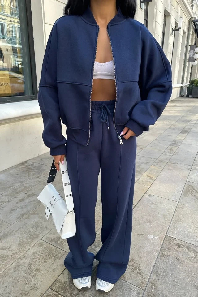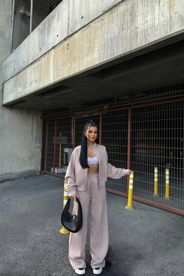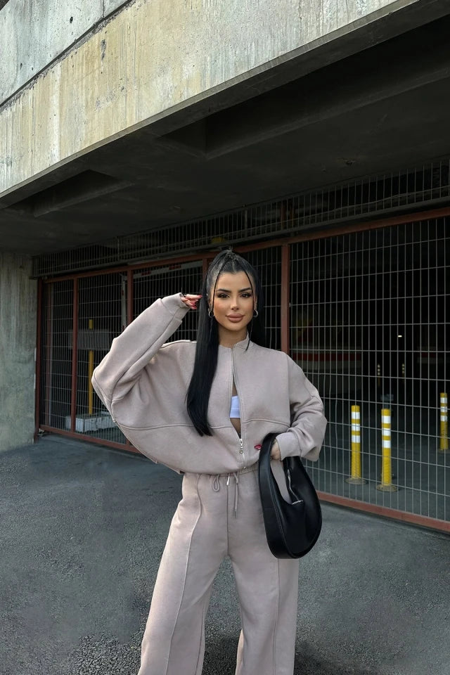 Your new season wardrobe wouldn't be complete without this zip through track top and bottom, we're seriously in love, babe this tracksuit just went straight to the top of your hit list. Just add the matching joggers, your fave trainers and minimal accessories for a simple but chic finish.