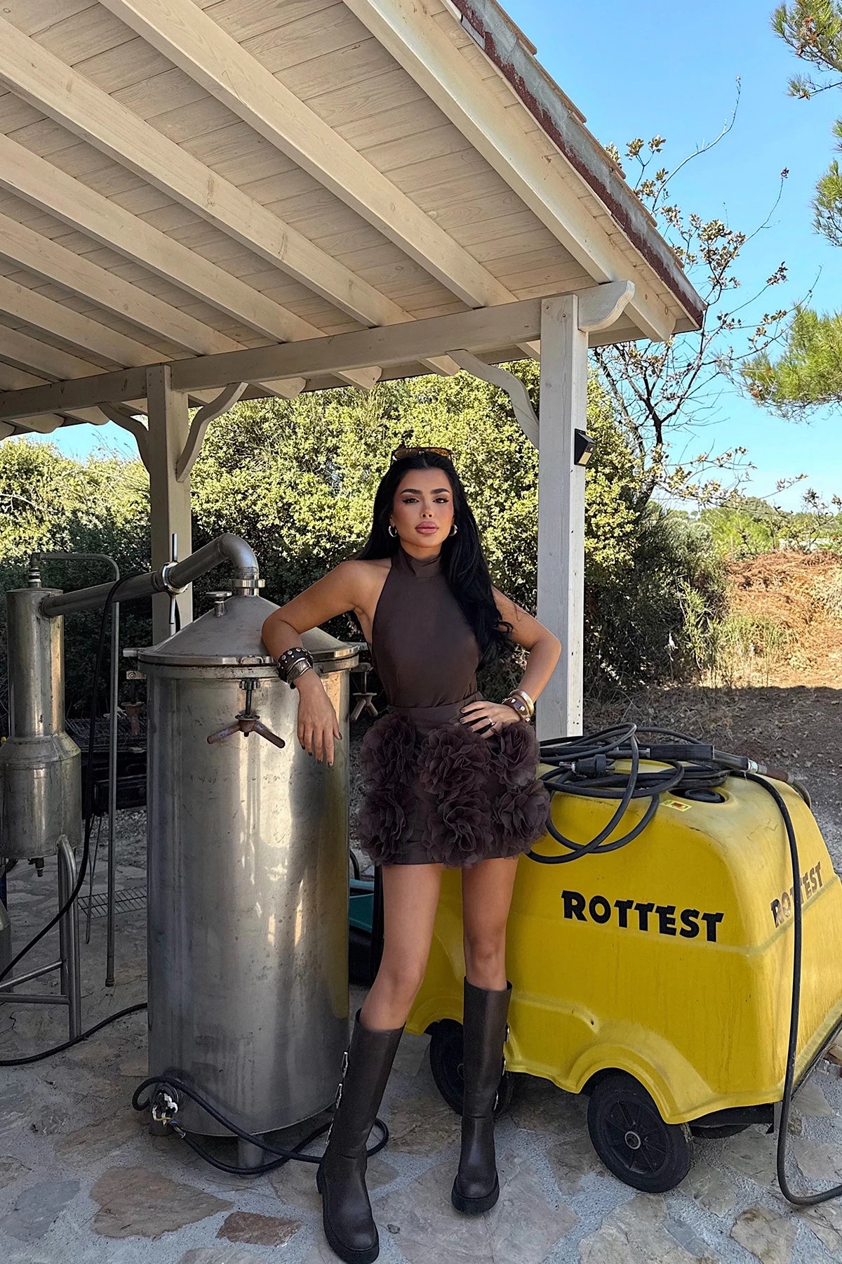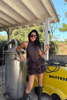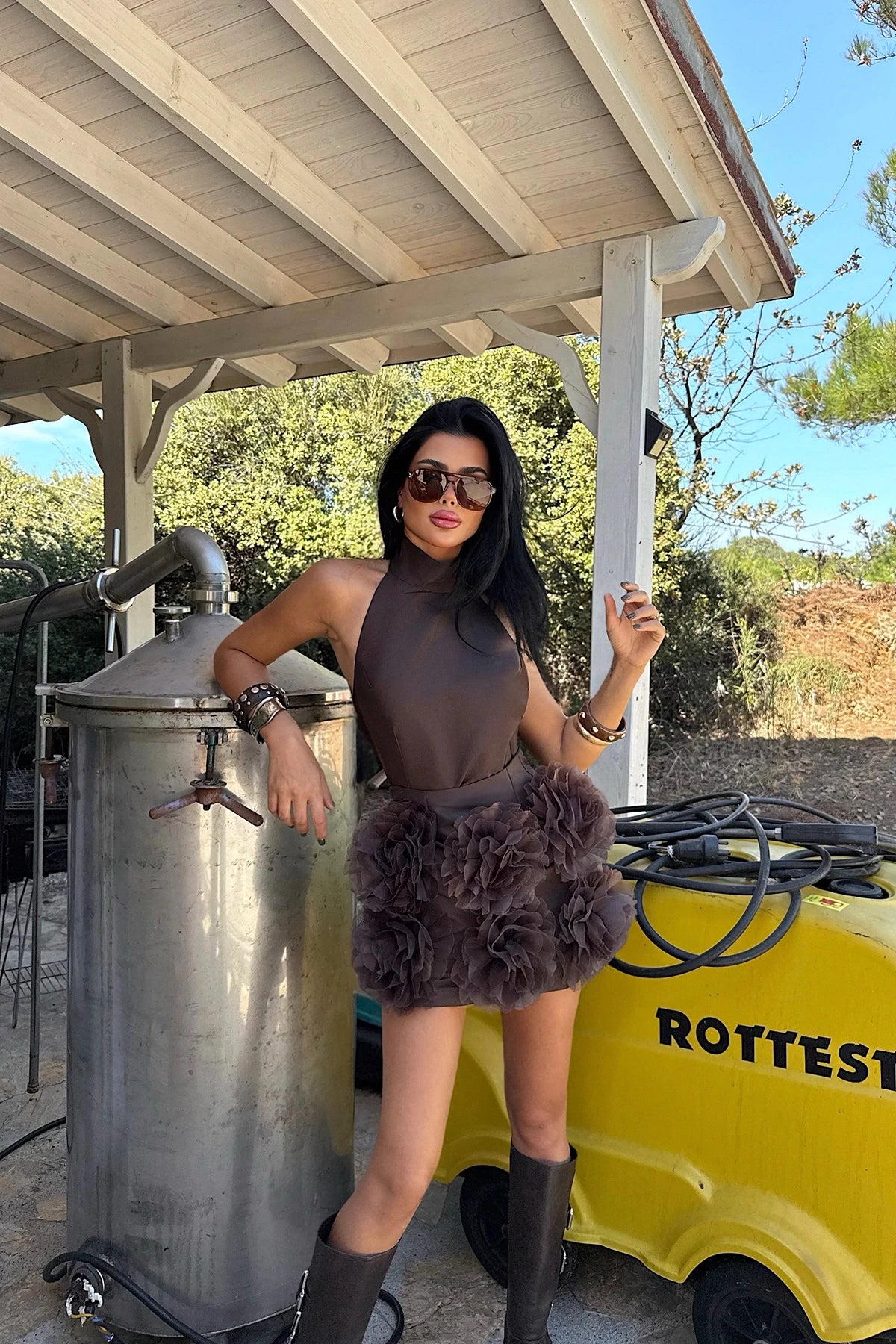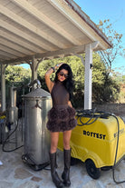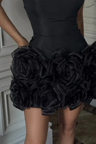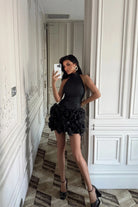 Elevate your after-dark edit with this black floral mini dress. The key to its allure is in the considered details: a romantic floral print set, and delicate ruffle detailing that adds a touch of considered drama. Cut in a flattering silhouette, this piece offers both structure and ease of movement. Consider styling this with a sculptural clutch from our accessories collection for a look that commands attention.