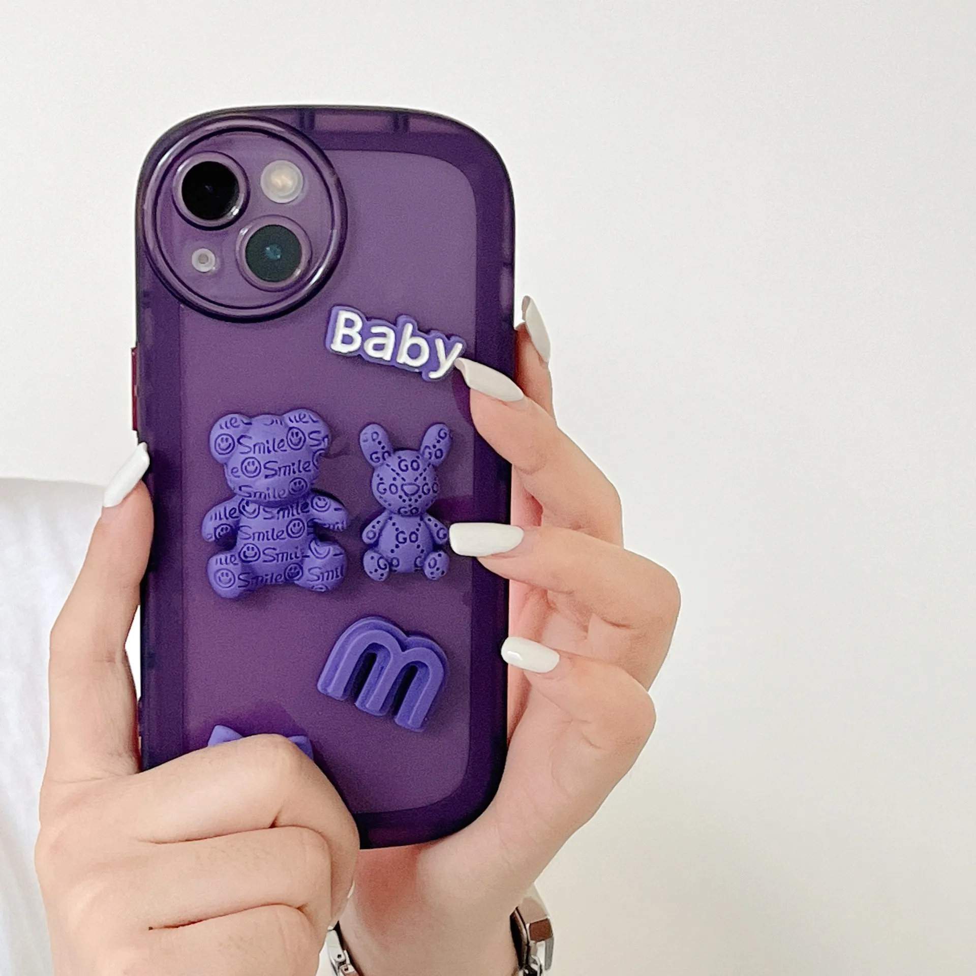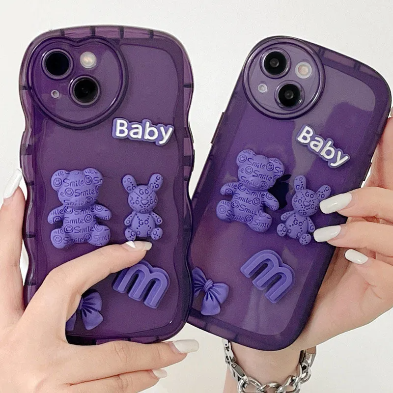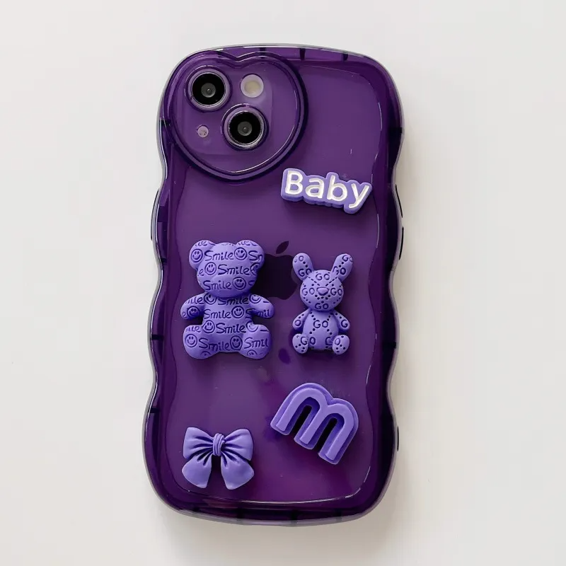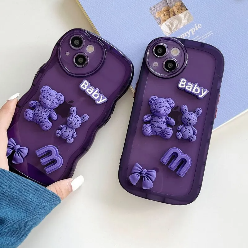 Creative Cartoon Purple Three-Dimensional Bear Heart iPhone Phone Case