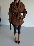 A trench coat is a cornerstone of any well-curated wardrobe, instantly conferring a sense of understated sophistication. This coat offers a timeless silhouette elevated by its double-breasted design and flattering belted waist, creating a refined shape. Cut in a longline length from a durable woven fabric, this trench promises to be a dependable outer layer for seasons to come. Babe wear yours over wide-leg trousers from our bottoms collection for an effortlessly chic daytime ensemble.