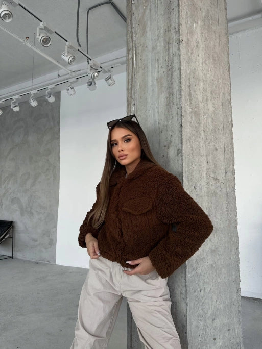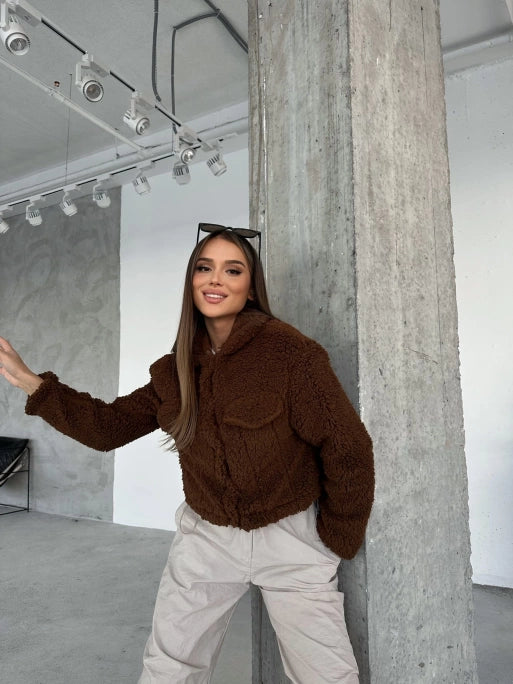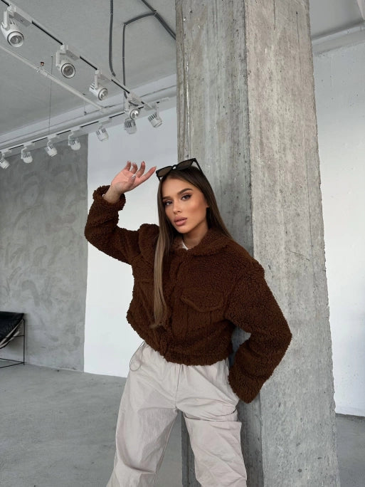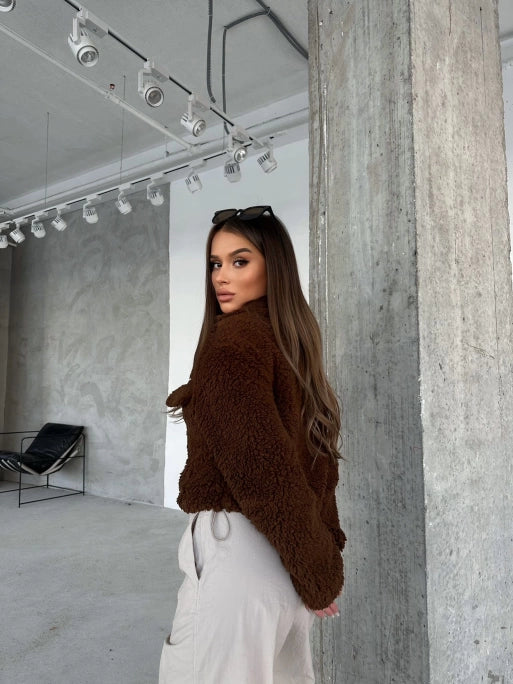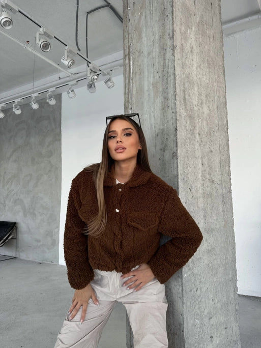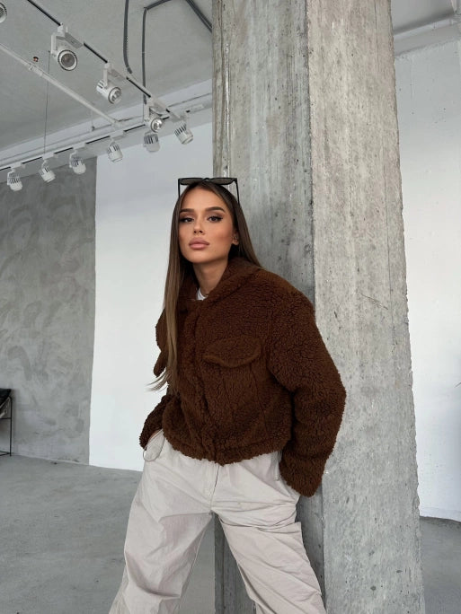 Brown Double Pocket Interior Lined Plush Jacket