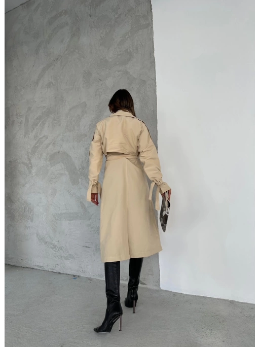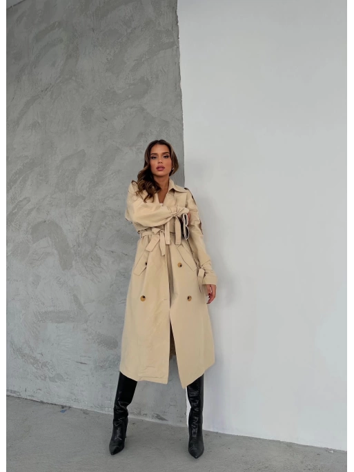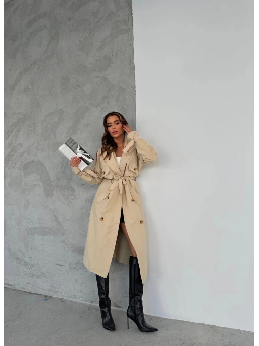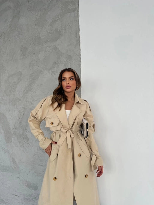 Cream Trench Coat With Arm and Waist Belts Unlined