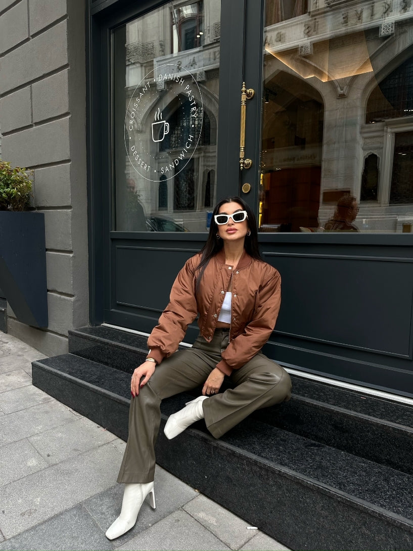 Say hello to your new season go-to with this camel bomber jacket. Brought to you in a camel material and a cropped length, what more could you ask for? This bomber jacket is at the top of our hitlist for this season and beyond doll. Simply add your chilled outfit of the day, chunky trainers and a shoulder bag for a look that everyone will want.