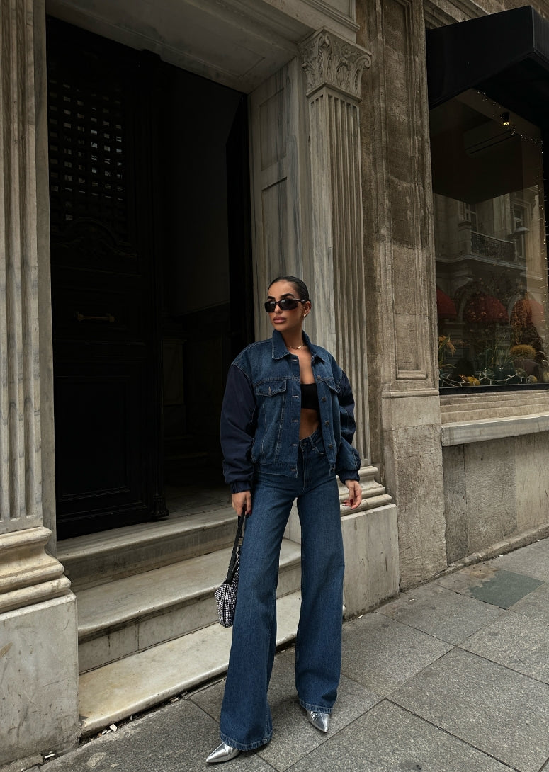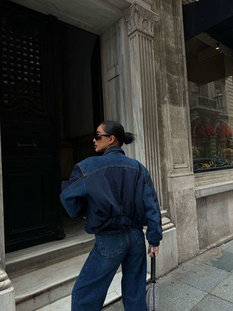 Add some stylish vibes into your new season wardrobe with this zip up denim bomber jacket. This bomber jacket is brought to you in a denim material with a button-up front and a comfy fit, how could you say no? Simply layer this over your outfit of the day for a blogger-worthy combo.