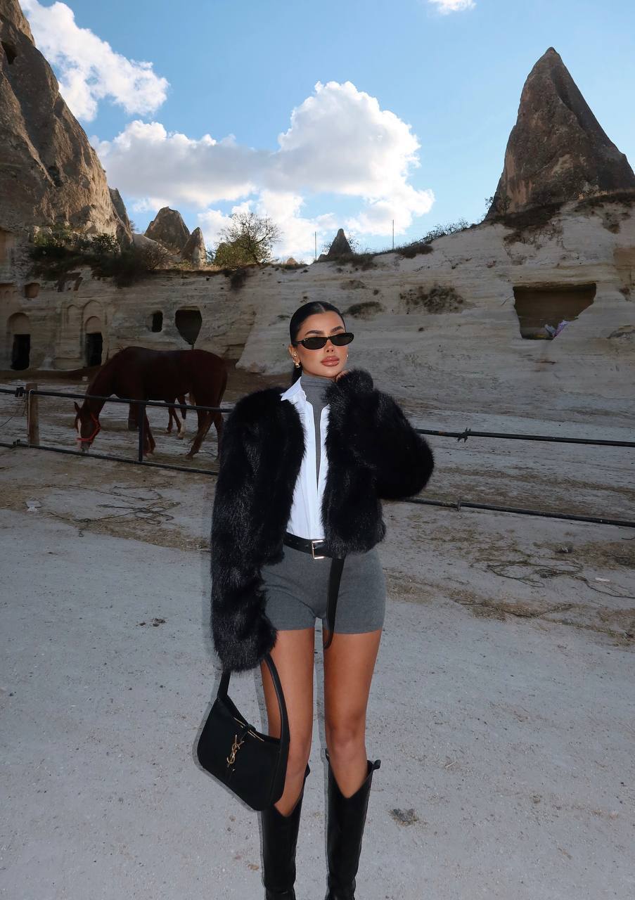 Stay cosy no matter what your plans in this black fur coat, we just can't get enough. You will be reaching for this faux fur coat all season long. Layer this over your outfit of the day to take your look to whole new level.