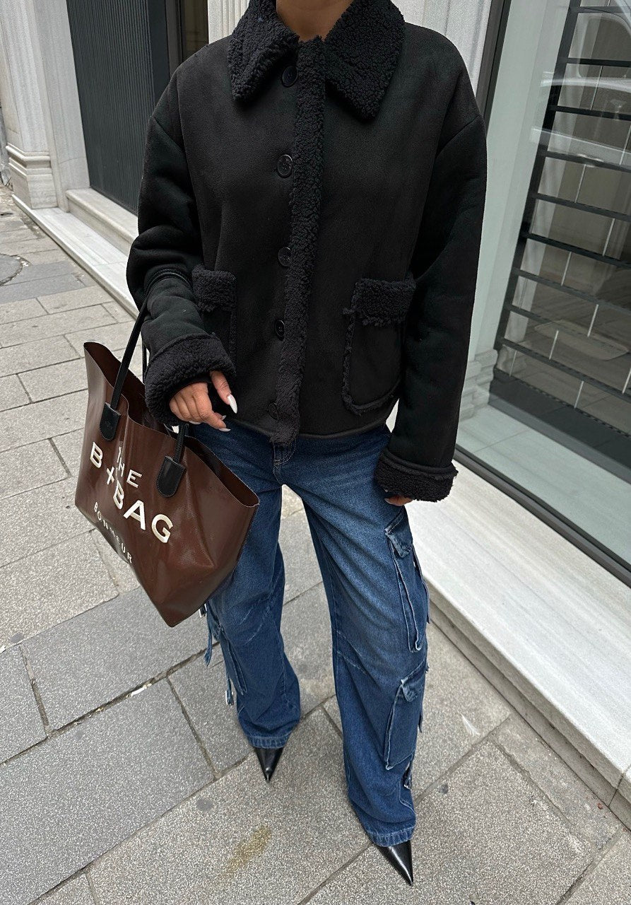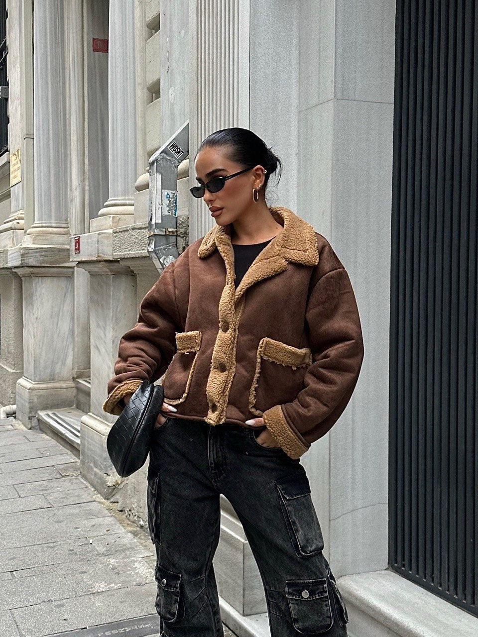 Get ready to nail major trends this season with this faux suede coat, you're sure to be earning all the likes. Team it with a sweatshirt, some over the knee boots and your fave accessories to elevate the look further.