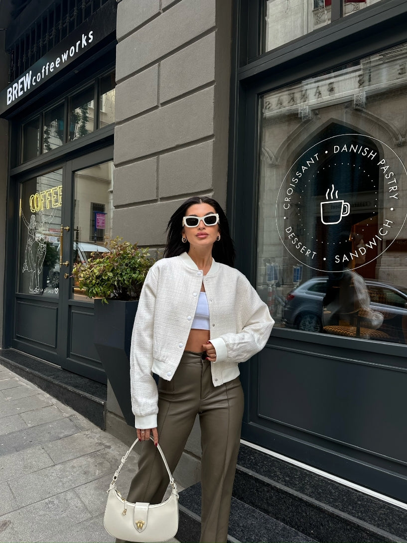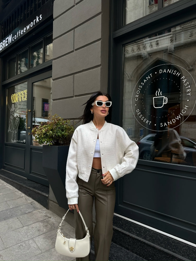 Take on your weekend the right way with this luxe bomber jacket, this is everything we’re loving and more. To complete the look style this seamlessly with a mini skirt, your fave tights and a shoulder bag for a look that will secure you all the likes.