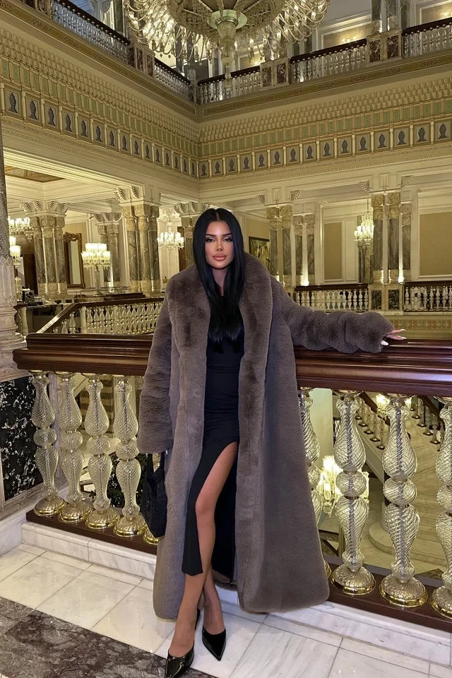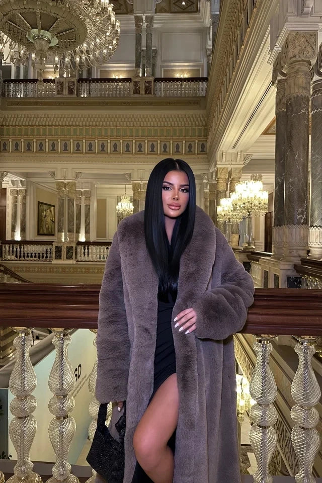 Channel all the luxe vibes into your outfit of the day with this soft faux fur tailored maxi coat. Made from a fur material with a tailored design and a maxi length, what's not to love? Perfect for dressing up your weekend 'fit and keeping you cosy in the cold, this maxi coat has it all. Team with faux leather shorts, knee-high boots and gold accessories for a flawless finish.