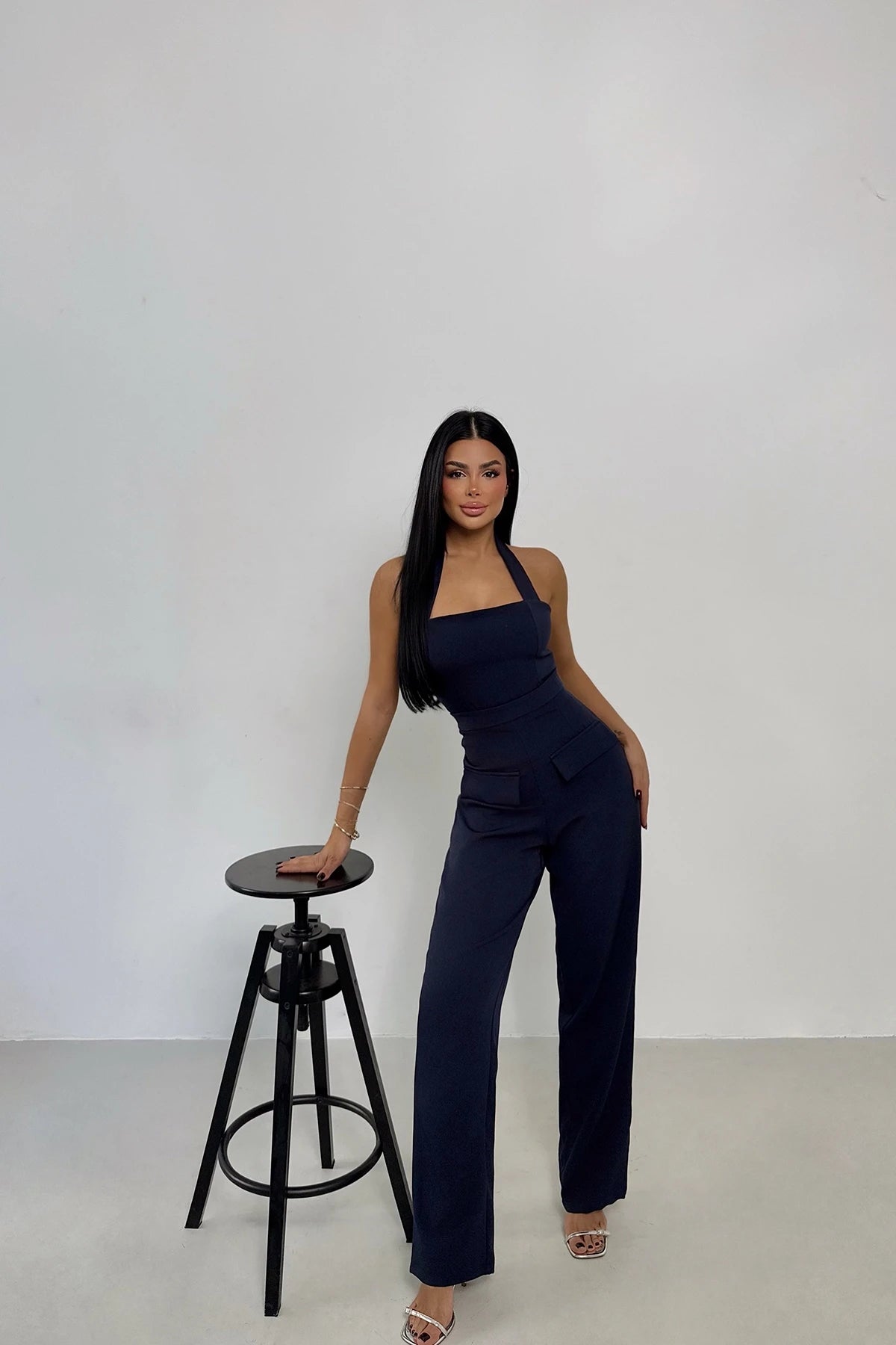 Navy Blue Pocket Detailed Trousers Suit
