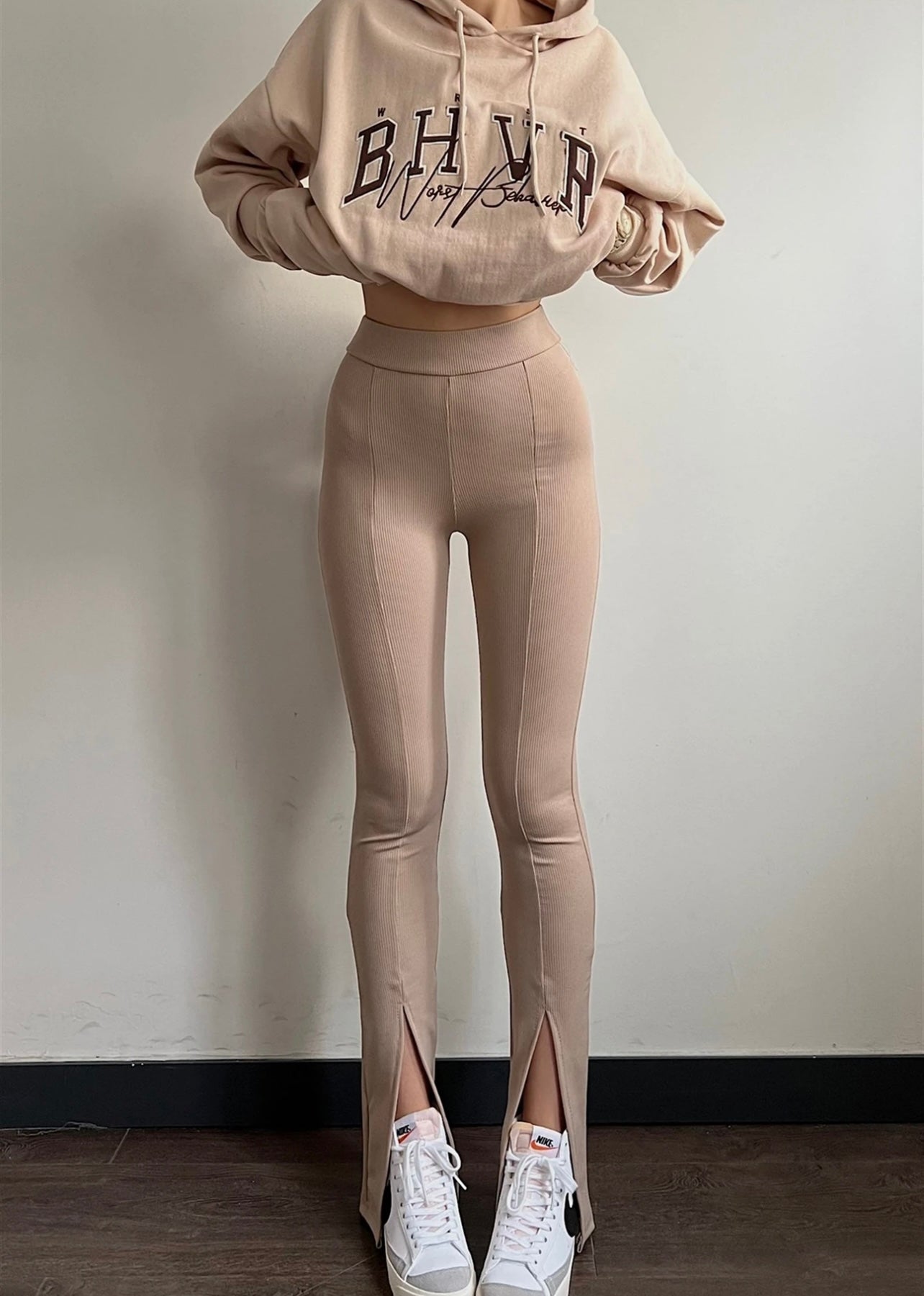 Beige Slit Wicked Tights