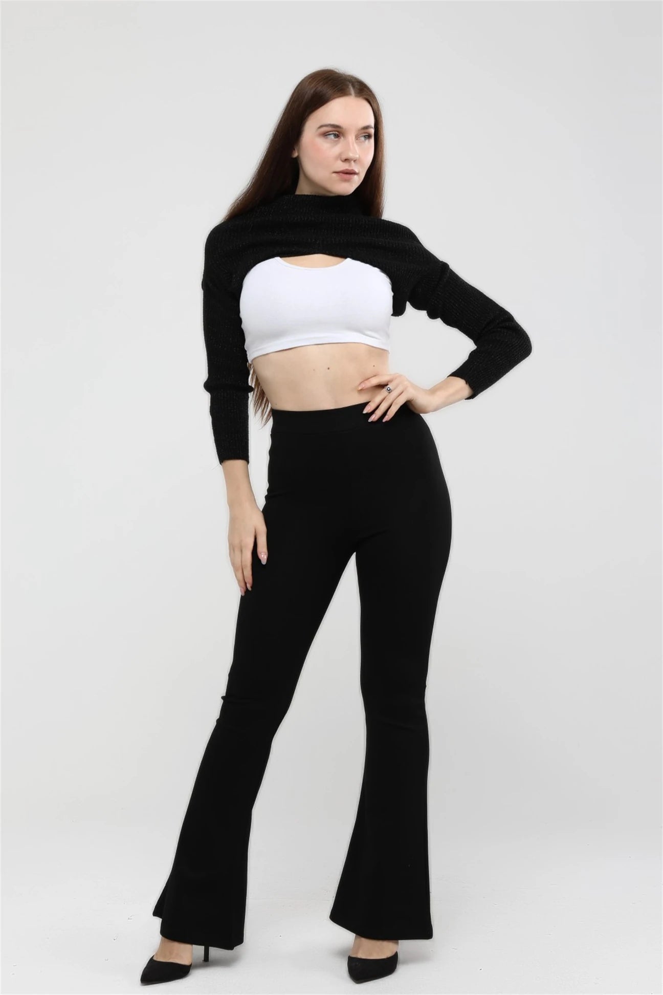 Black High Waist Spanish Leg Steel Knitted Tights