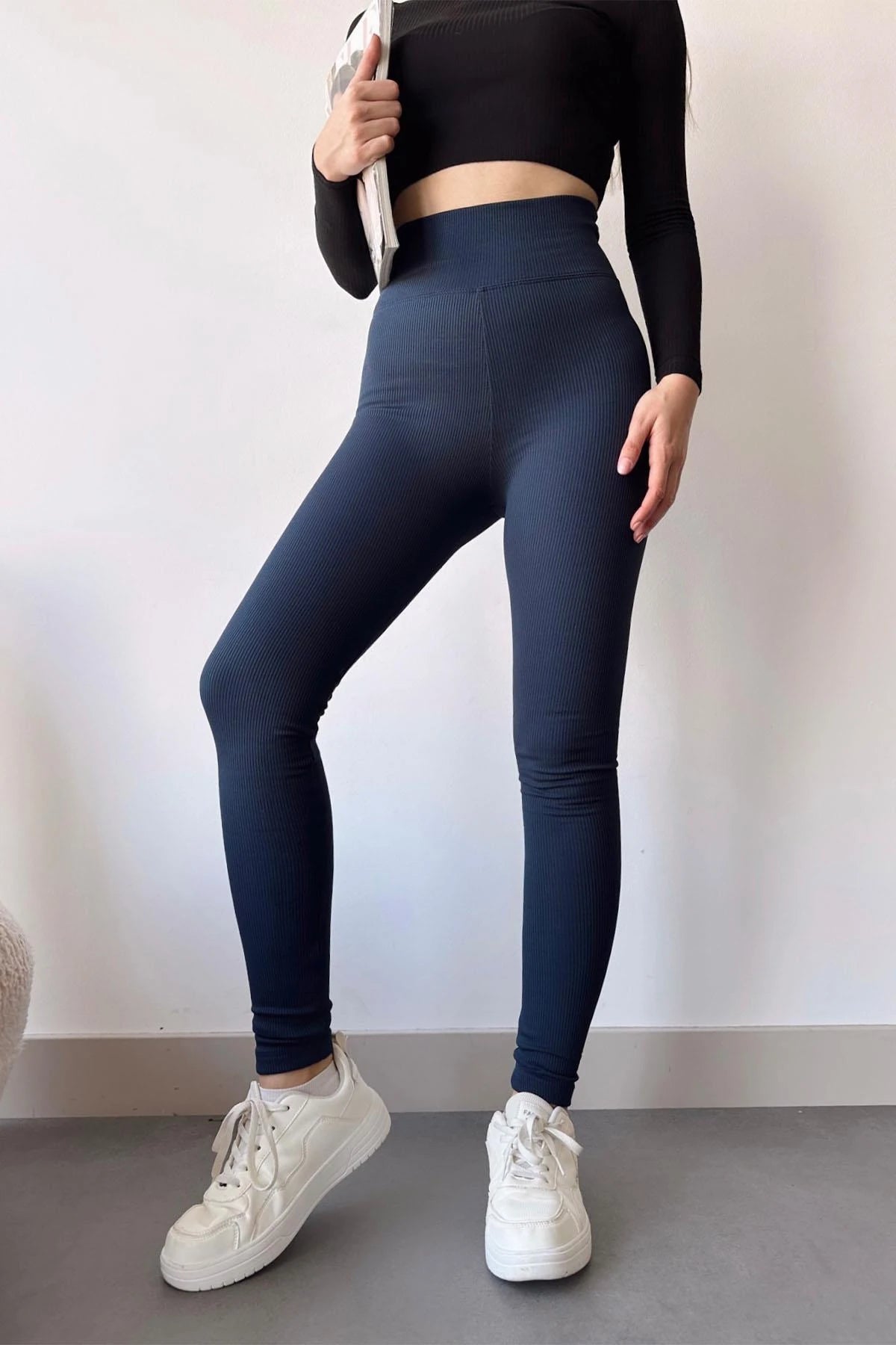 Navy Blue High Waist Corded Wicked Tights