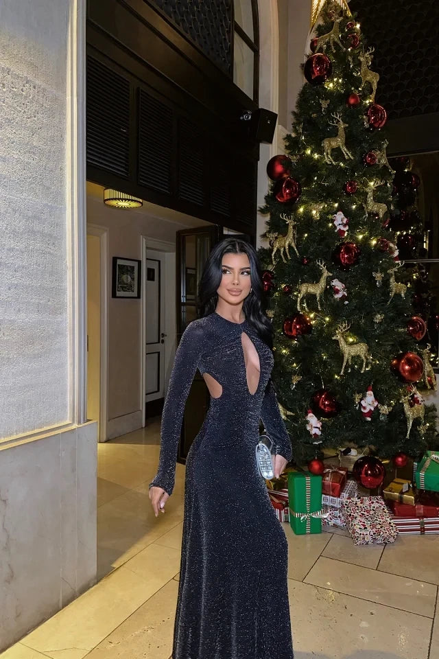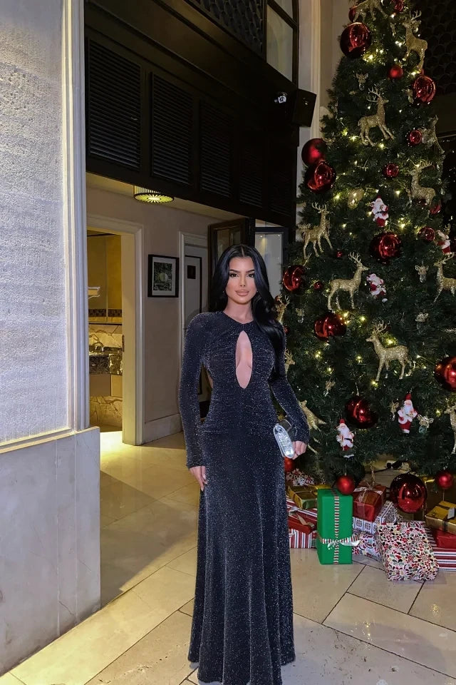 Black Window Detailed Glitter Dress