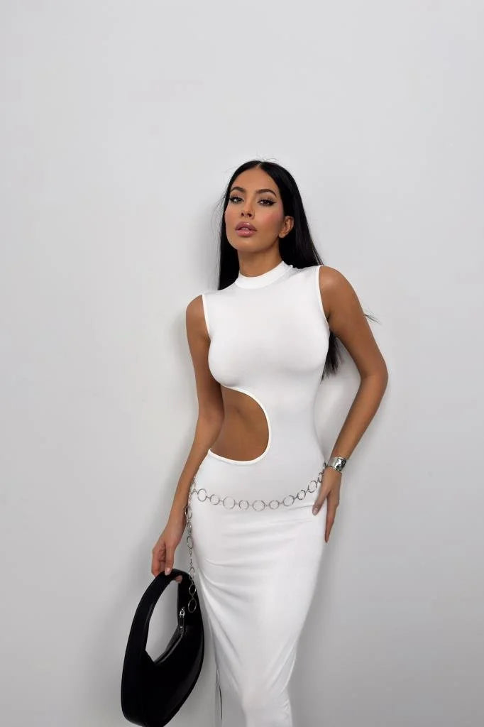 Asymmetric Waist Belt Long Dress