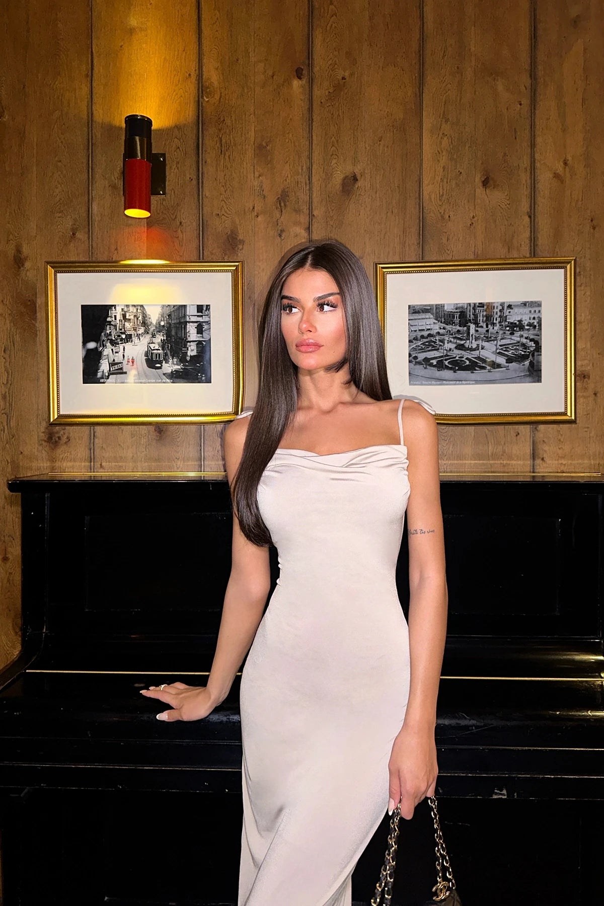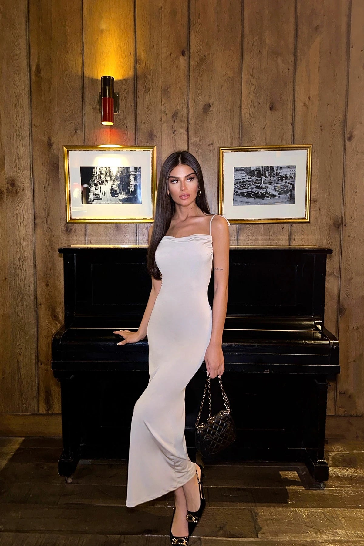 Strap Connected Cowl Neck Maxi Dress