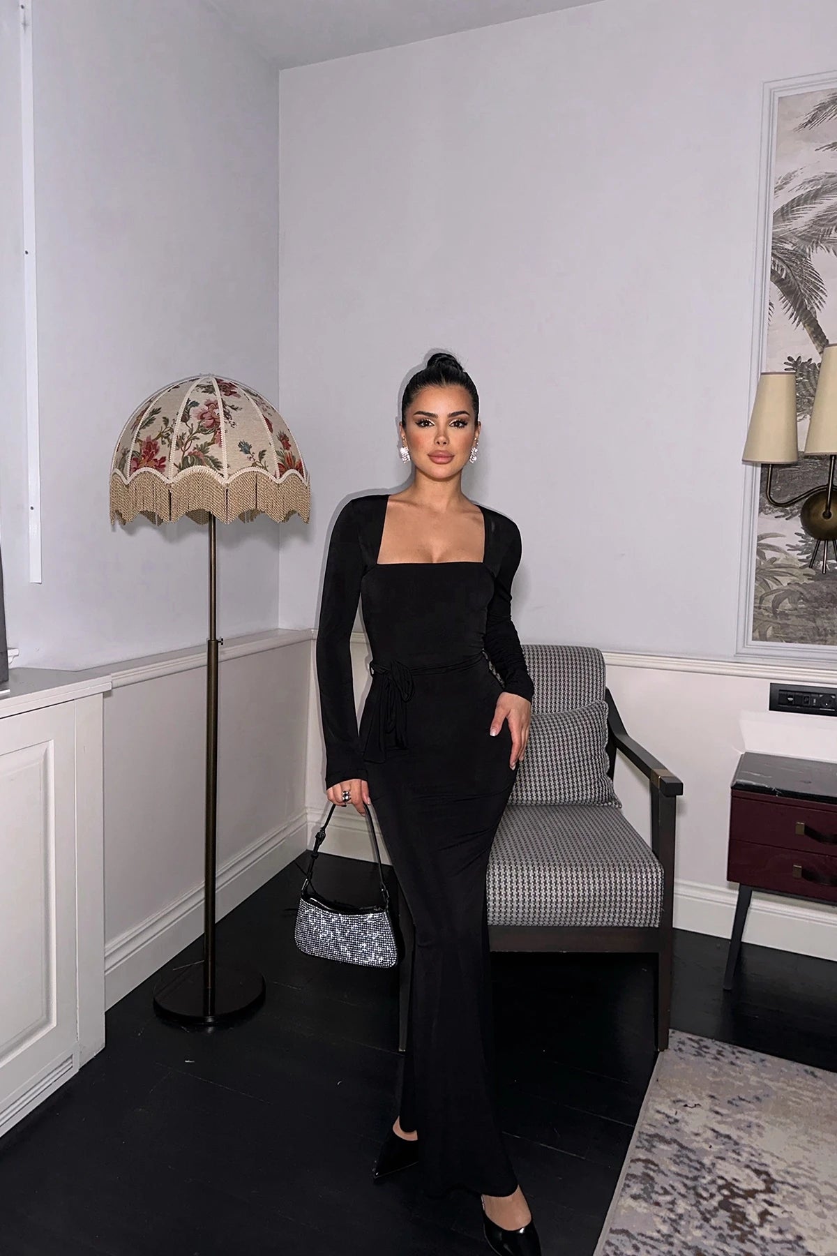 Long Sleeve Square Neck Maxi Dress