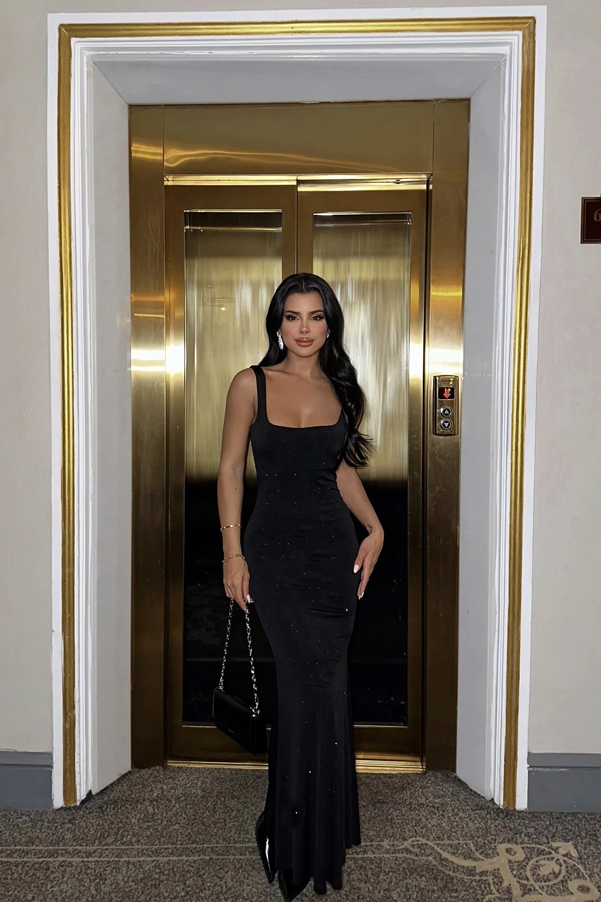 Black Strap Stone Detail Dress
