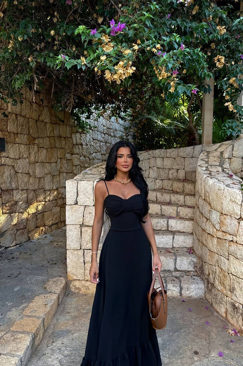 Make everyday styling simple with this long dress. This maxi dress is brought to you in a black material with a loose fit, a strappy design and a maxi length, what's not to love? This maxi dress is calling your name. Complete the look by styling this with your box-fresh high heels and gold accessories for a flawless finish.