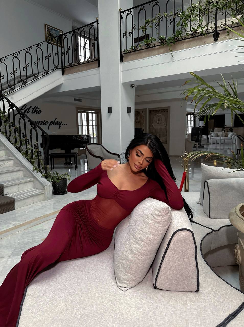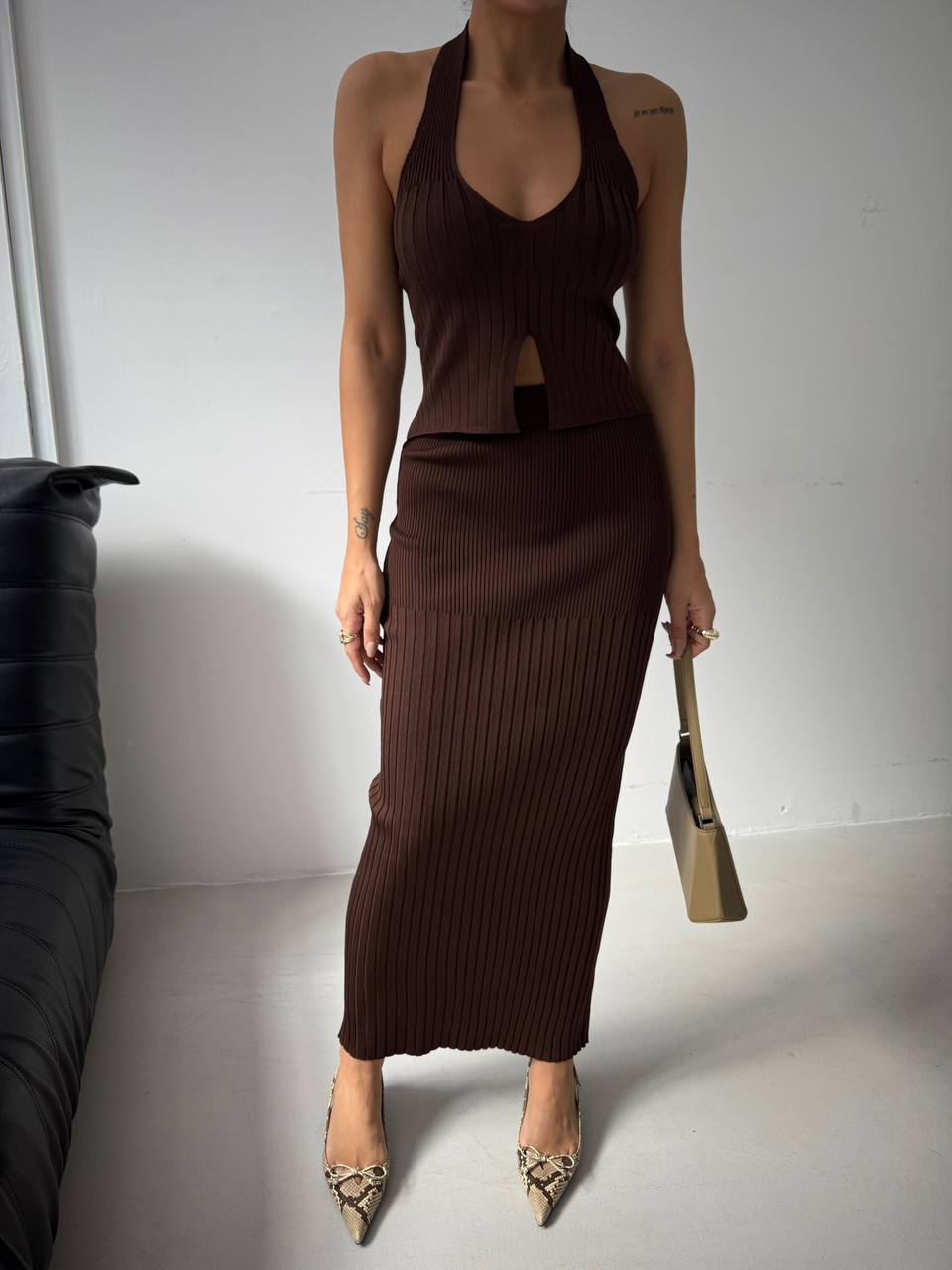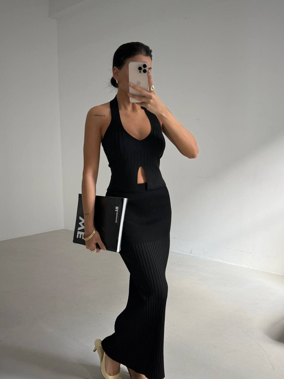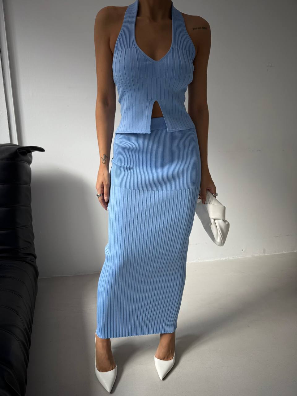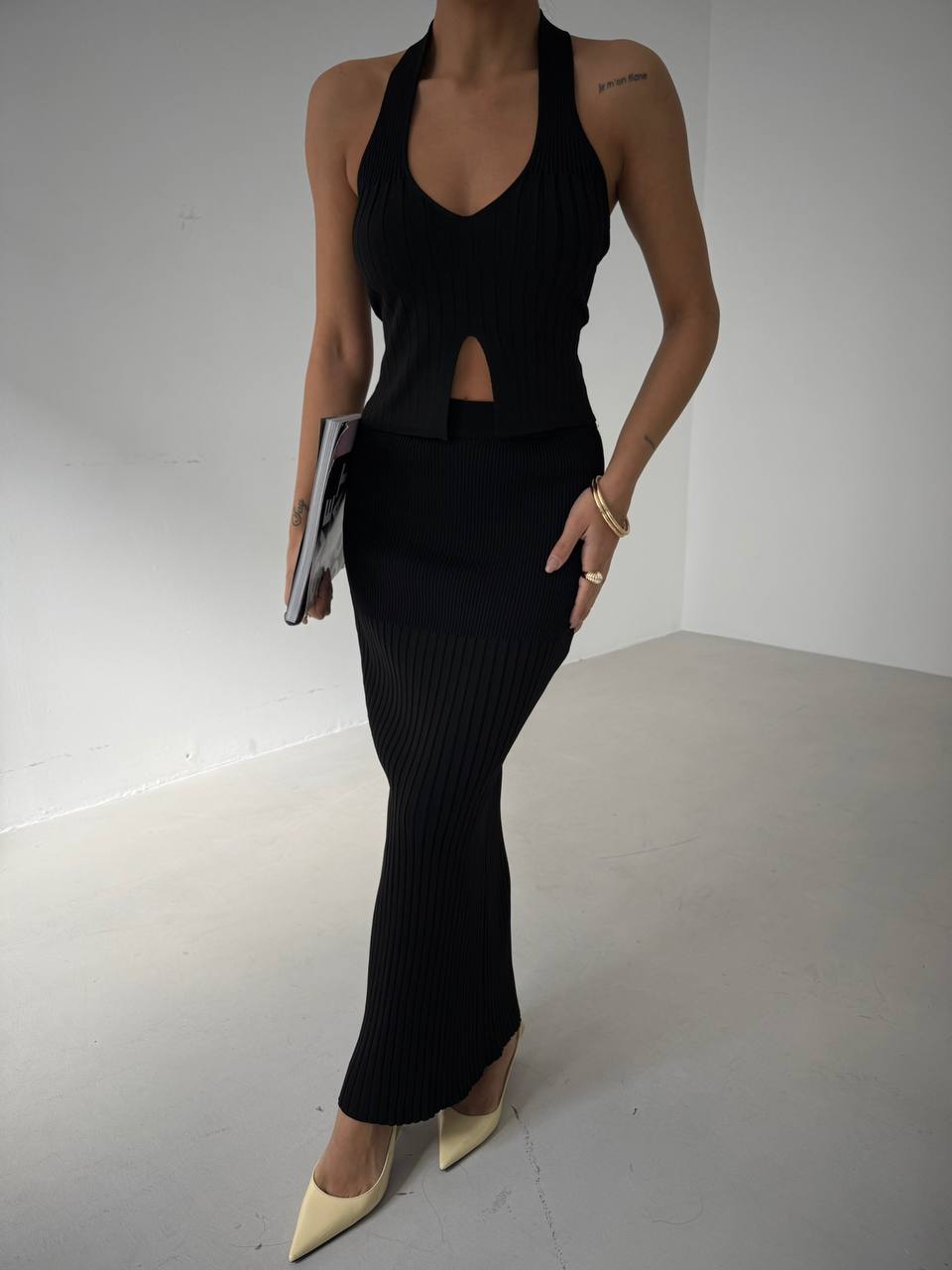 V-Neck Detail Cropped Blouse and Maxi Skirt